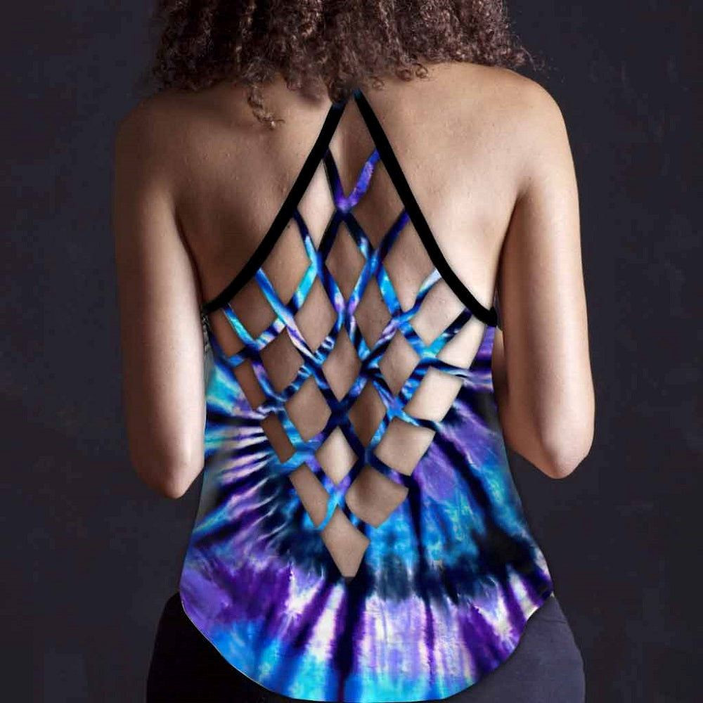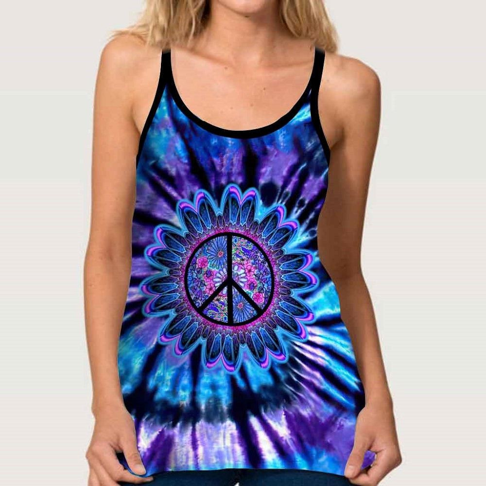 Tie Dye Daisy With Hippie Peace Symbol Ladies Tank Top, Tank Tops For Women