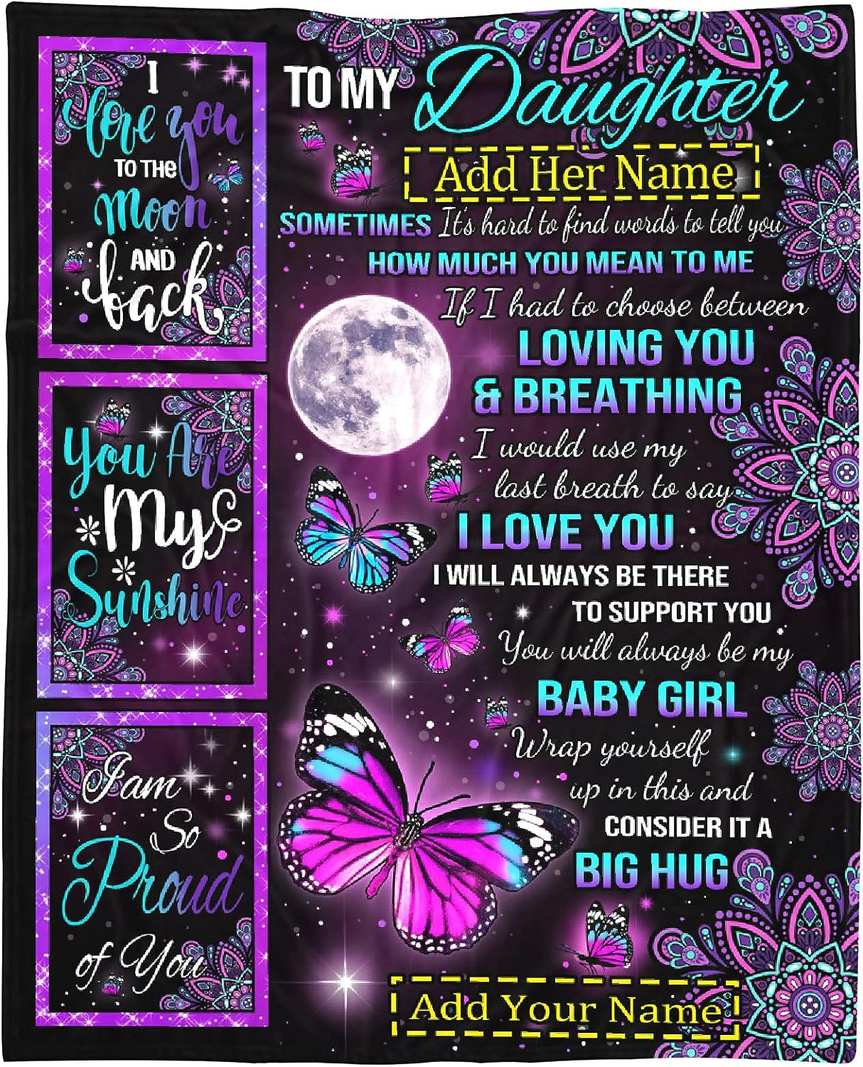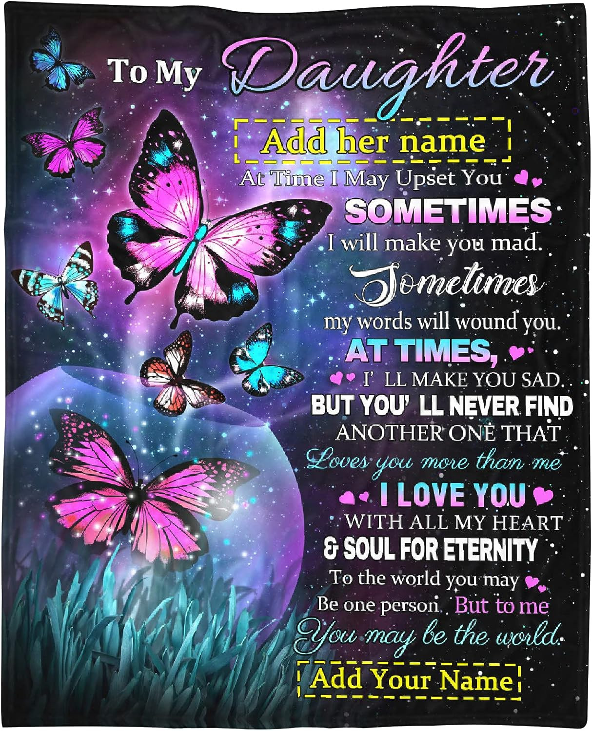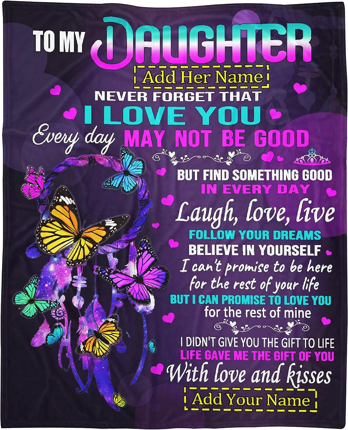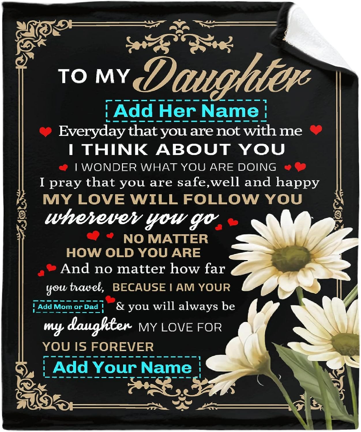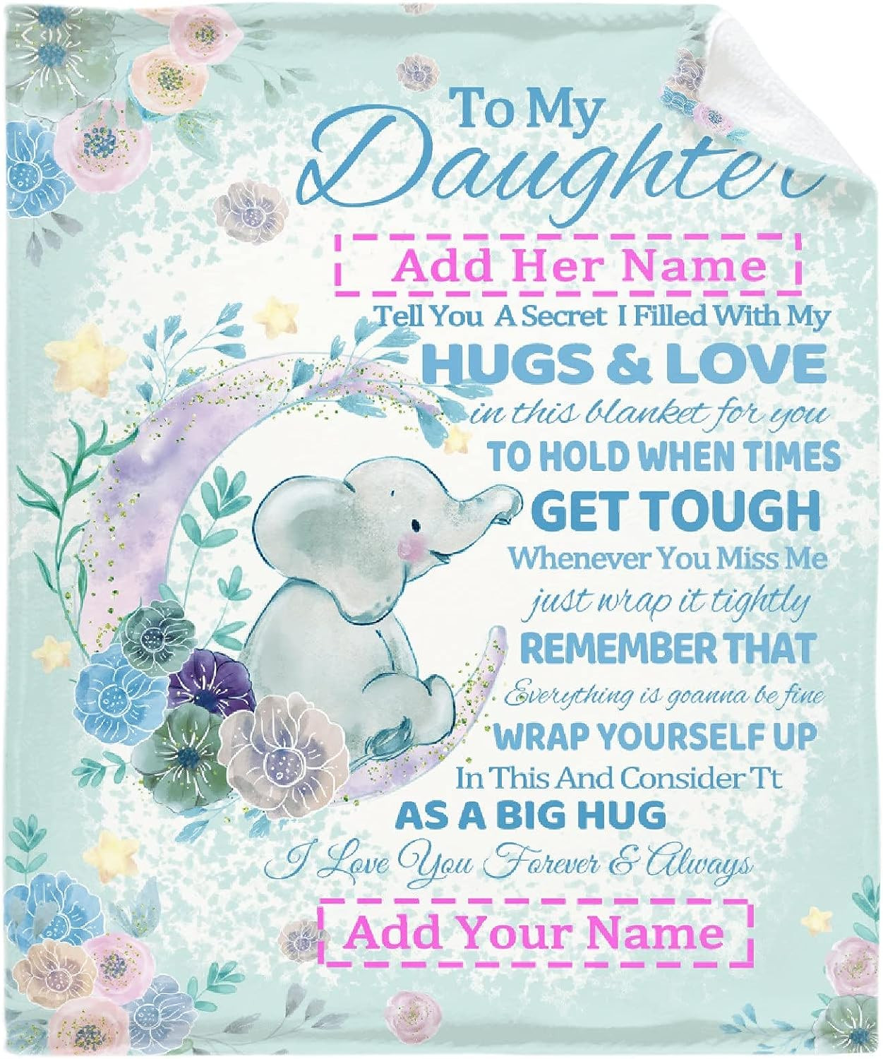 To My Daughter Blanket From Mom Dad, Custom Name Gift For Girl Women Super Soft Comfy Floral Blankets