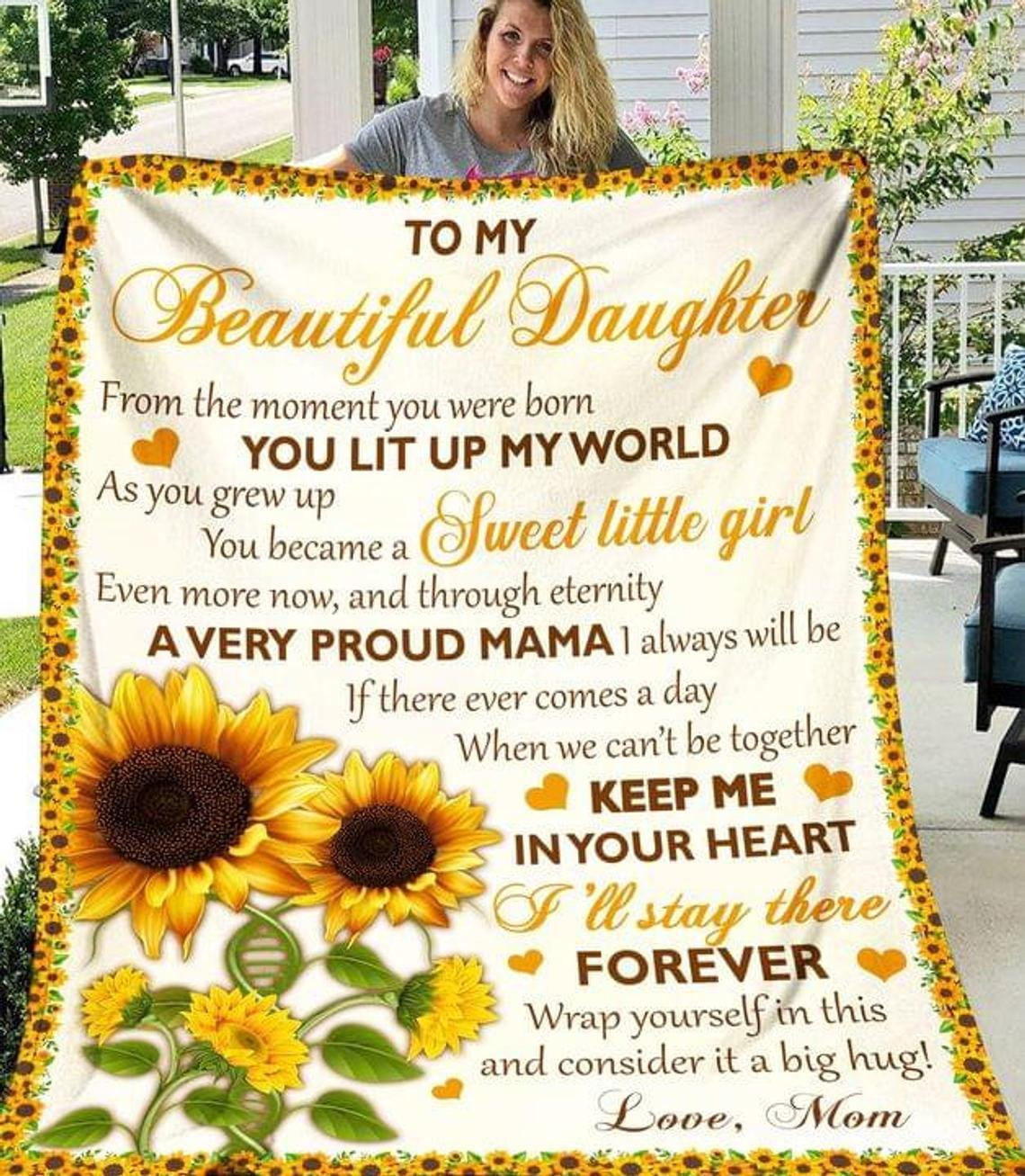 To My Daughter Blanket, Keep Me In Your Heart I’Ll Stay There Forever Love Mom Fleece Blanket, Sherpa Blanket