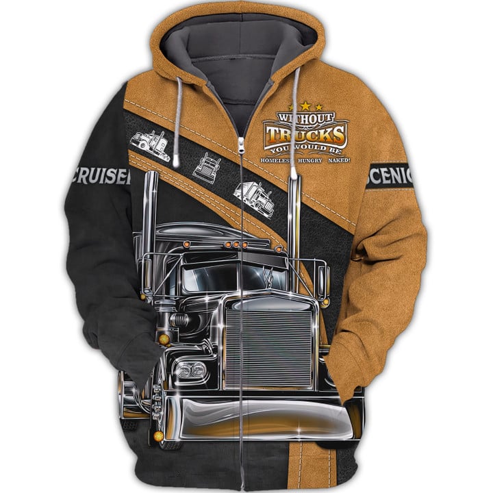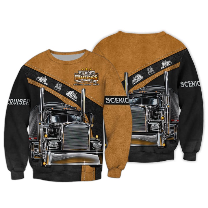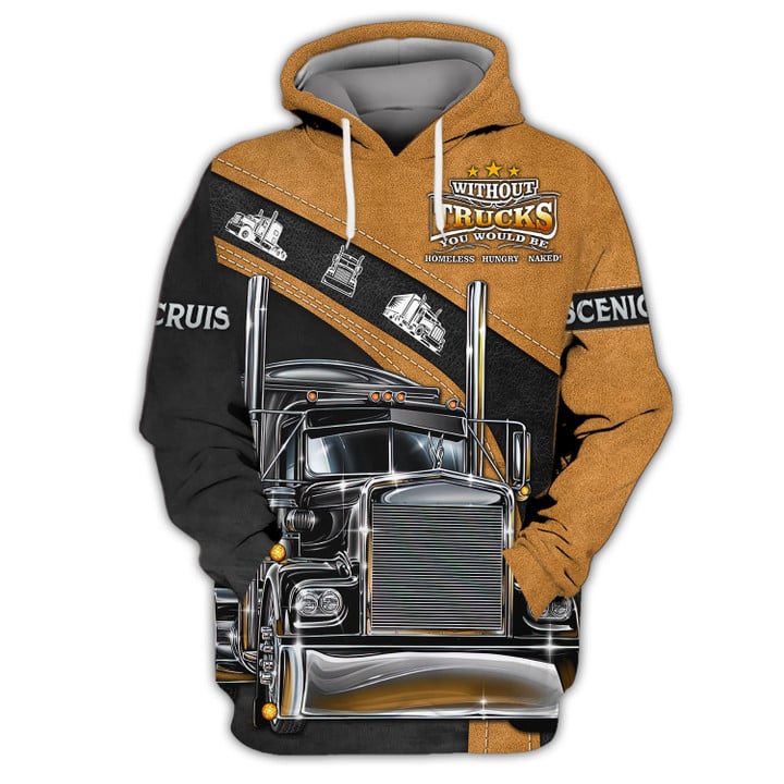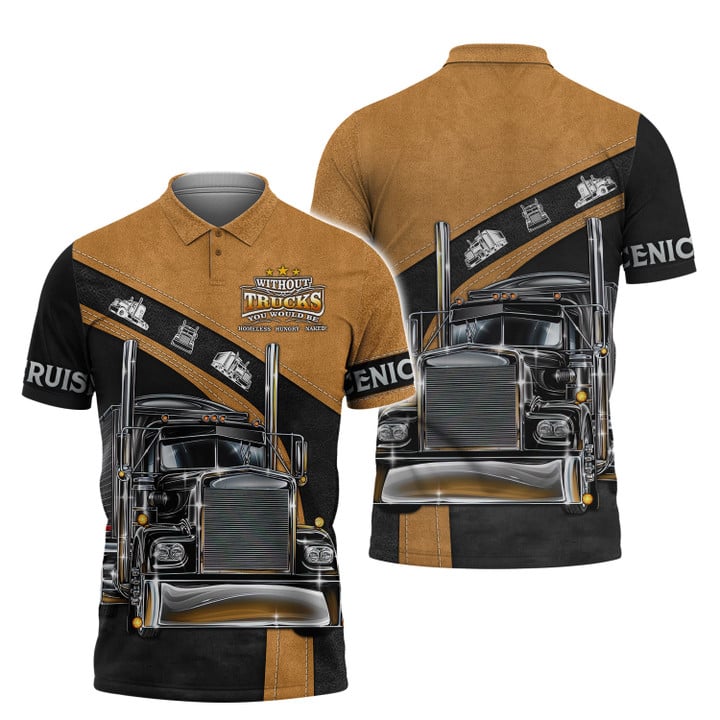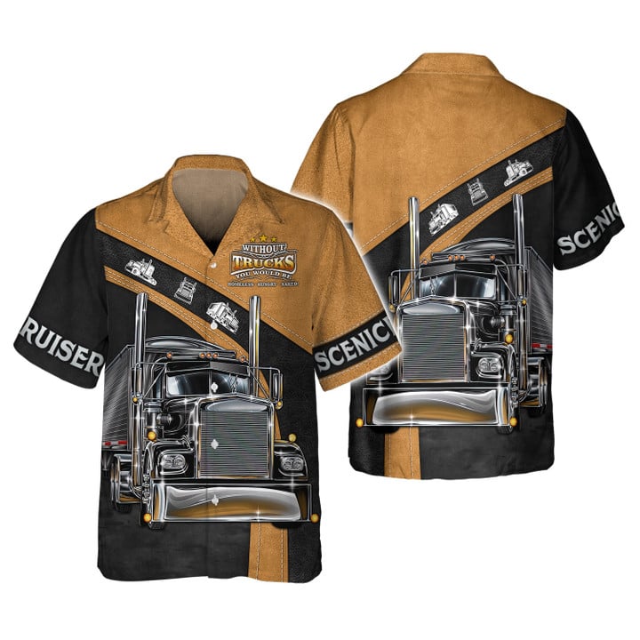 Trucker 3D All Over Printed Shirt Black & Brown, Trucker Hawaiian Shirt, Trucker Hoodie, Trucker Polo Shirt, Gift For Trucker