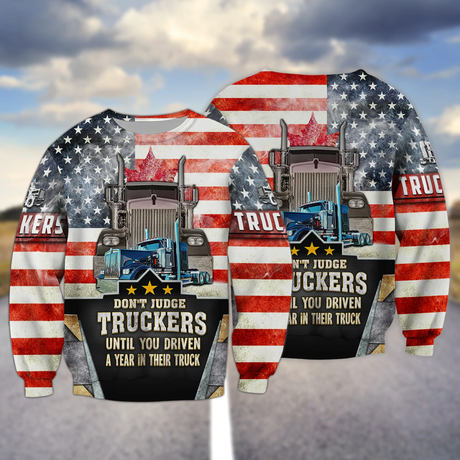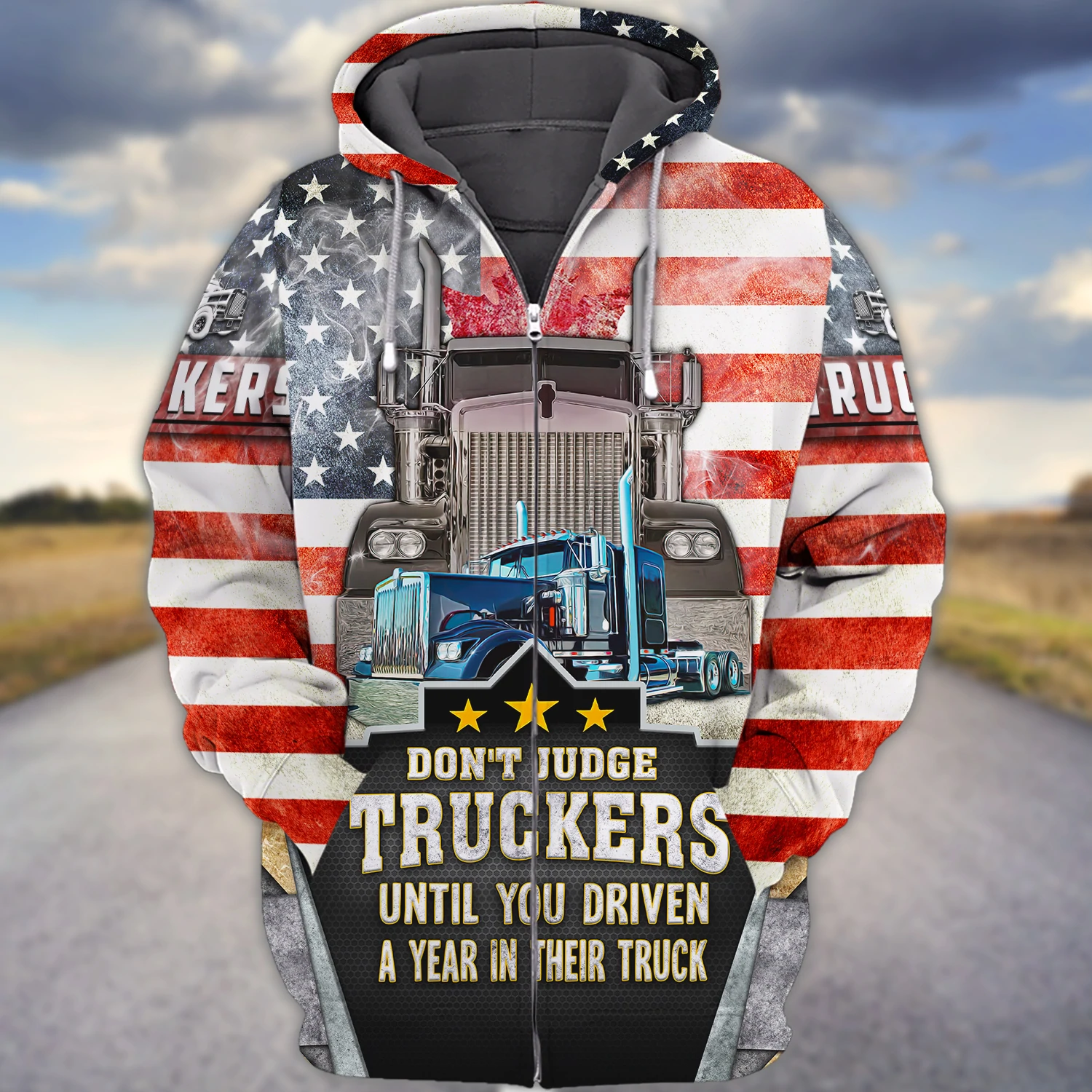 Trucker America Don’T Judge Truckers Until You Driven A Year In Their Truck, Trucker 3D Hoodie, Zip Hoodie