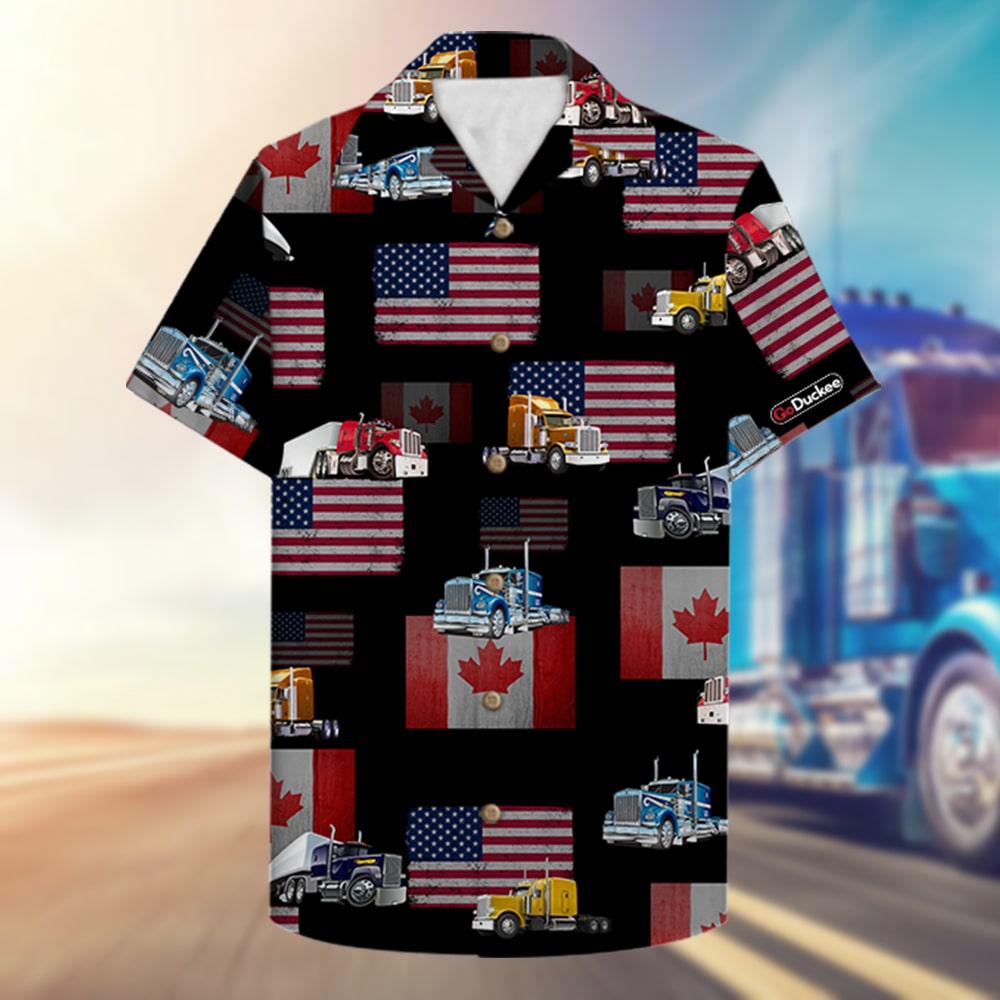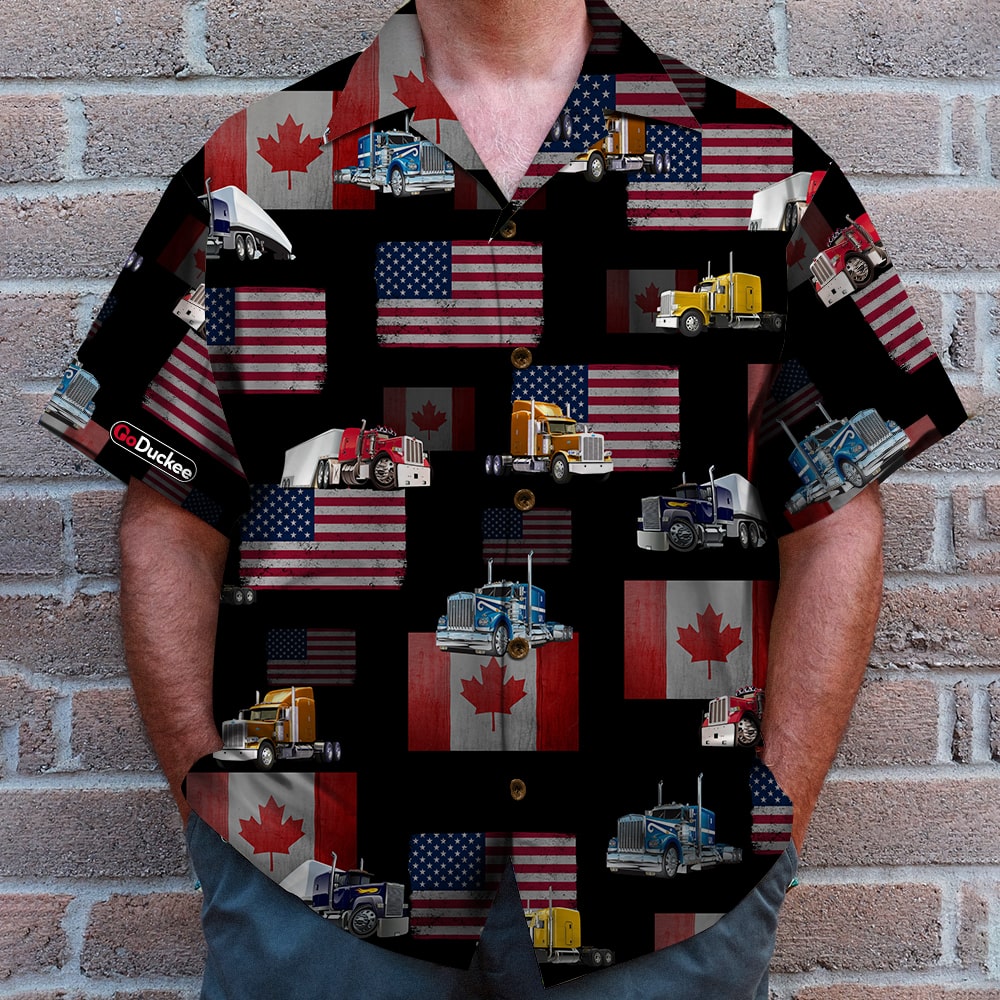 Trucker Hawaiian Shirt – I Identify As A Trucker – Canada & American Truck Pattern