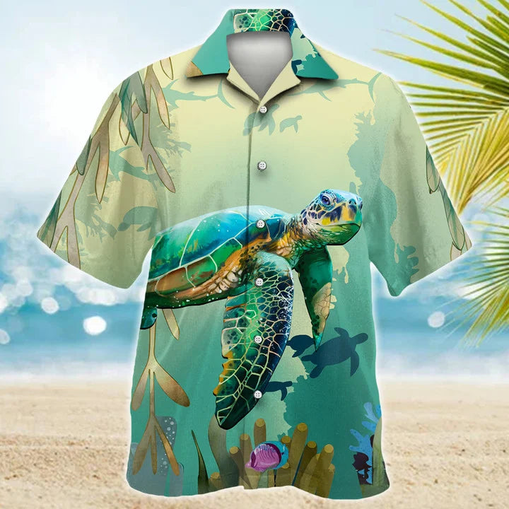 Turtle Hawaiian Shirts For Men Women, Sea Turtles Summer Aloha Button Down Short Sleeves Men’S Hawaiian