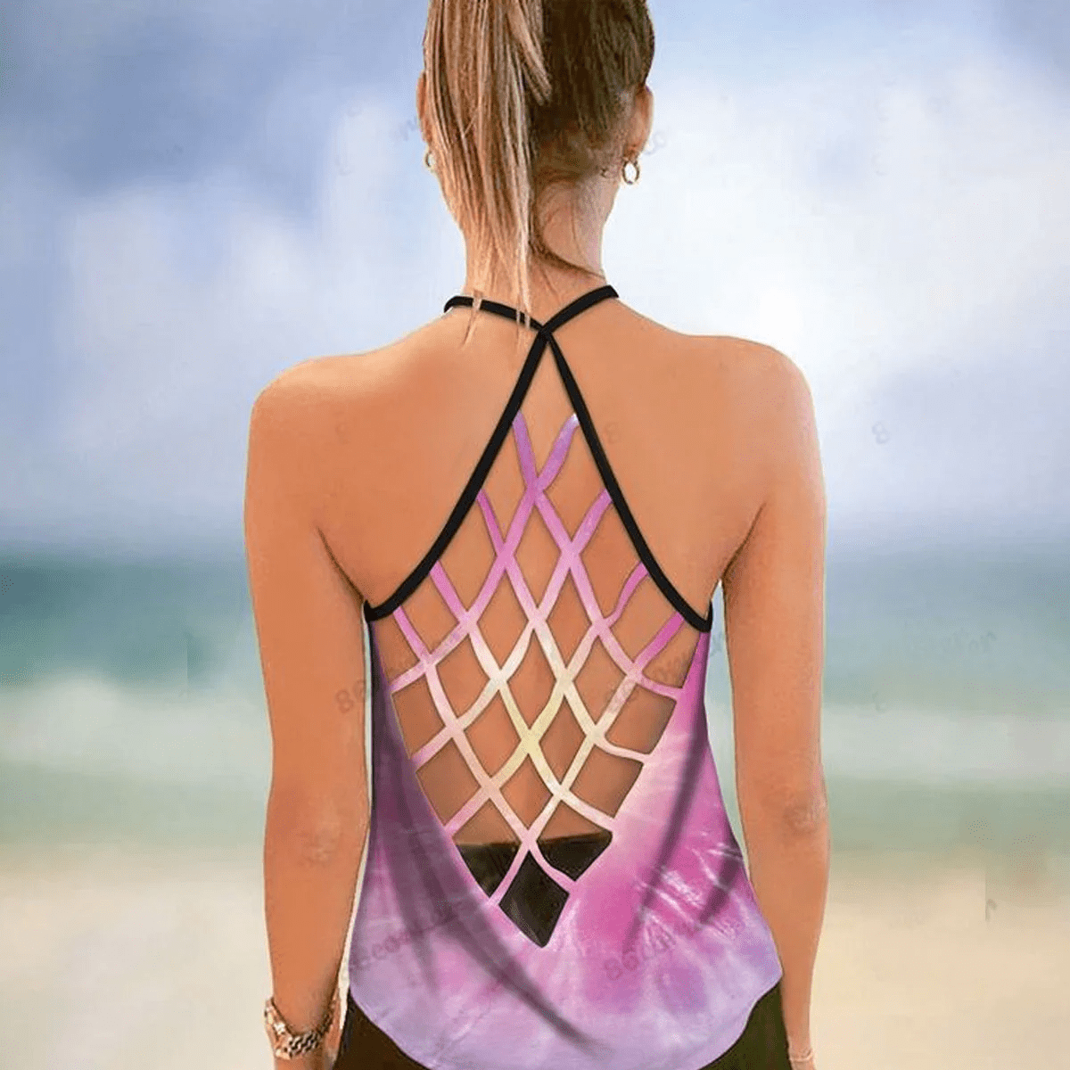 Turtle Salty Beach Pink Criss-Cross Tanktop For Women