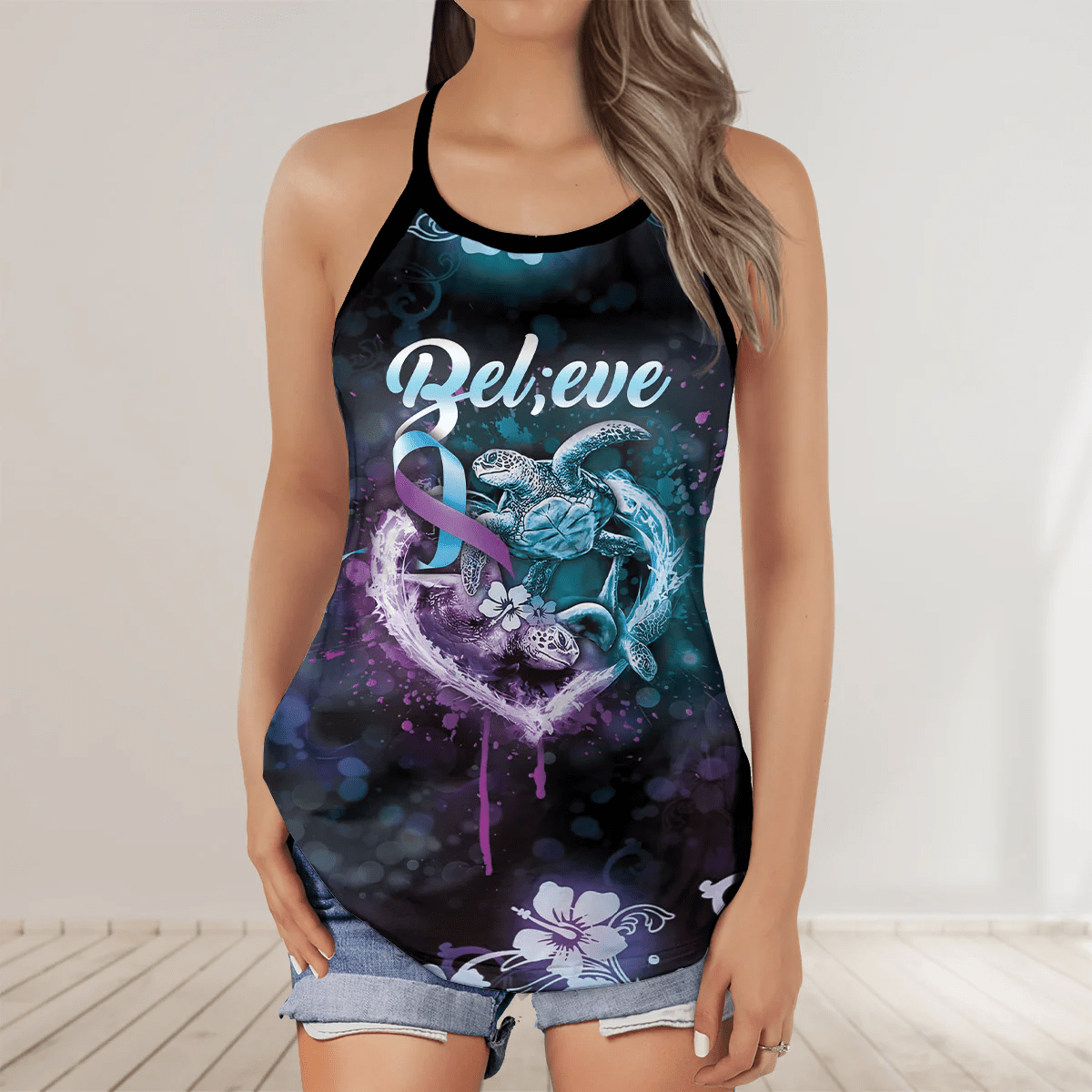 Turtle Sea Believe Suicide Awareness Aop Criss-Cross Tank Top