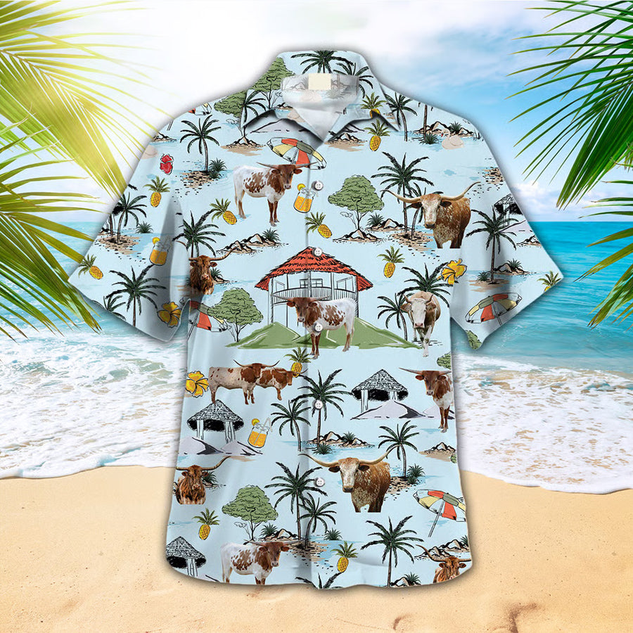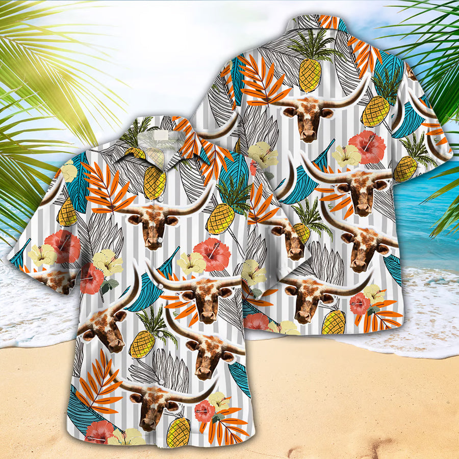 Tx Longhorn Hawaiian Shirt For Farm Lovers – Tx Longhorn Cow Hawaiian Shirt, Hawaiian Shirt For Men And Women