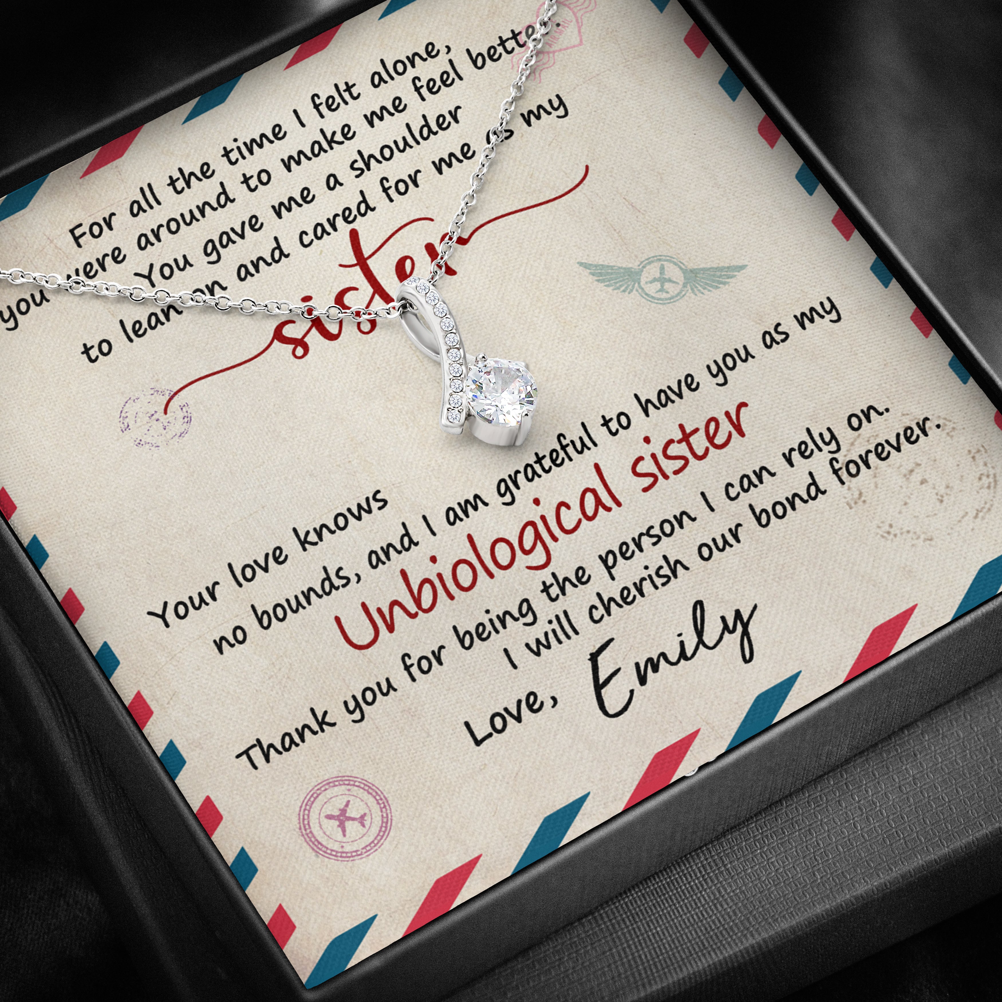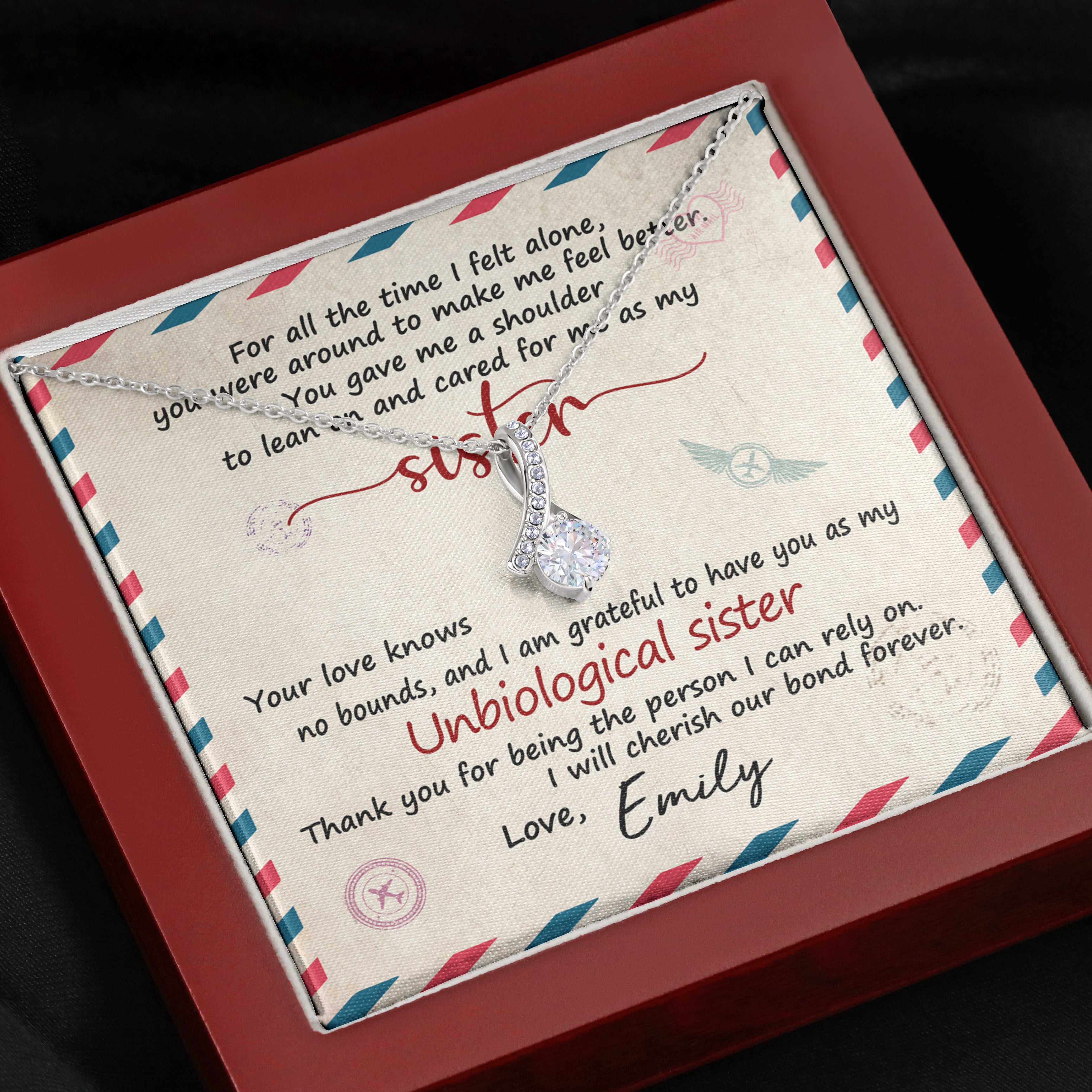 Unbiological Sister Alluring Beauty Necklace – Custom Name – Stamp Postage