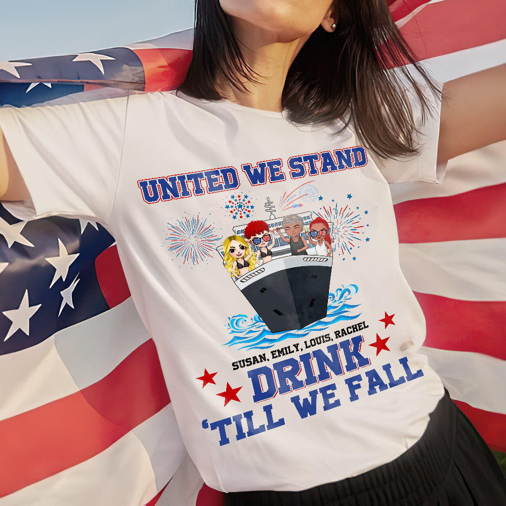 United We Stand Drink Till We Fall Personalized Cruising Shirts, Gift For Independence Day