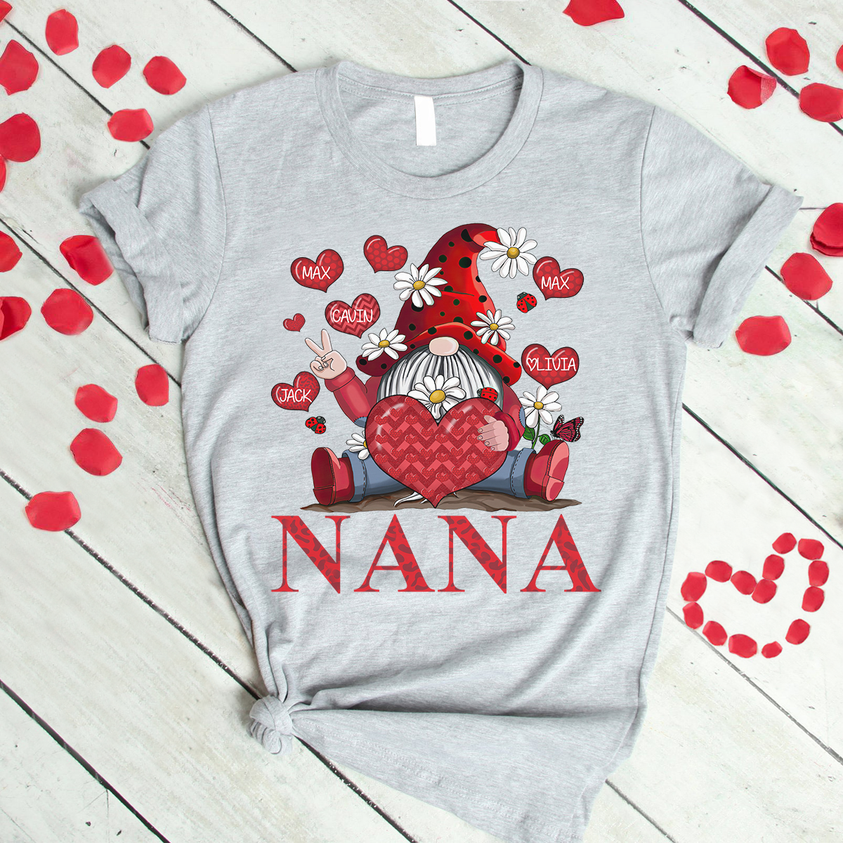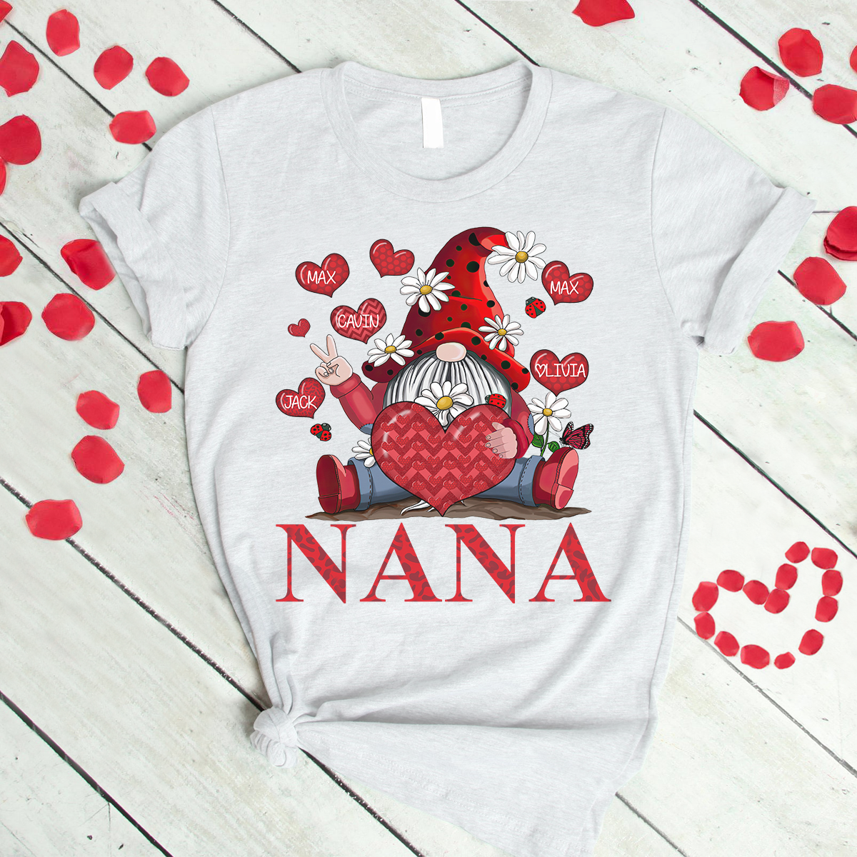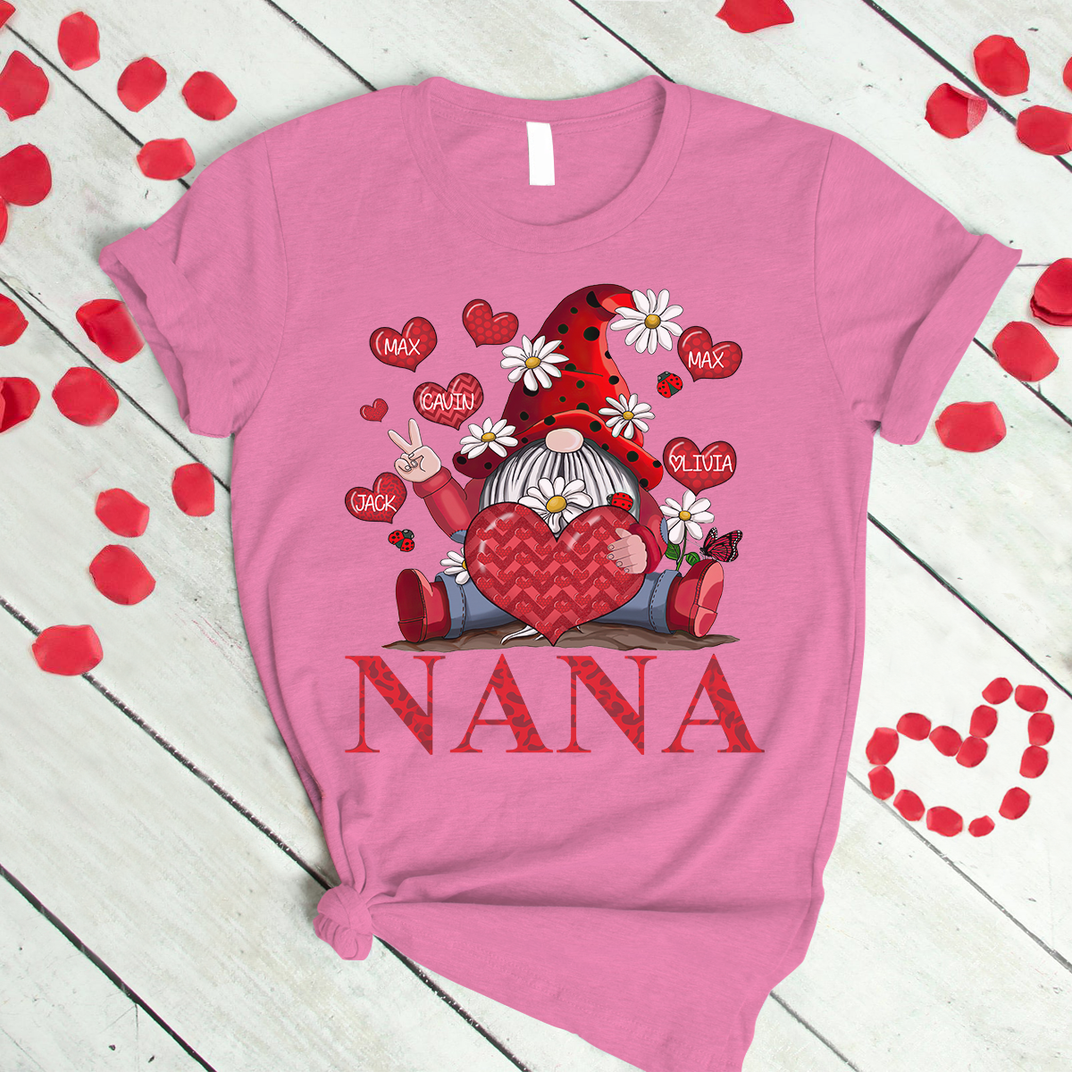 Valentine’S Gift For Grandma, Gnome Valentine Shirt, Personalized Grandma And Grandkids T-Shirt