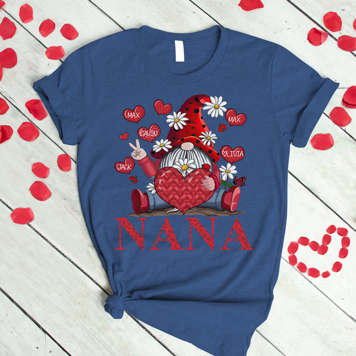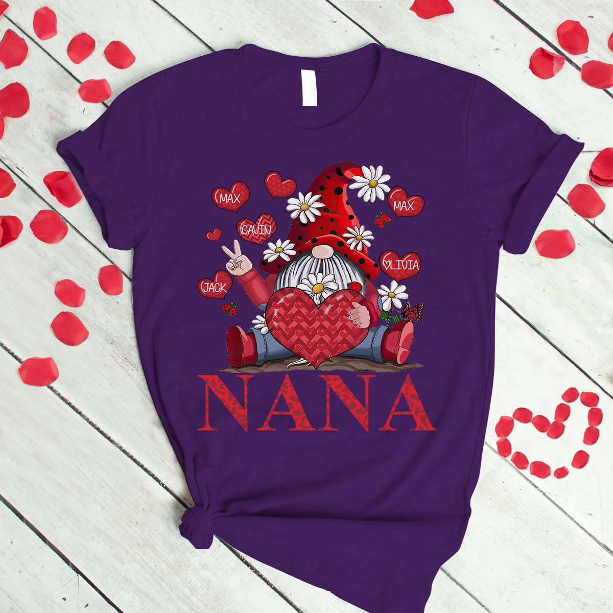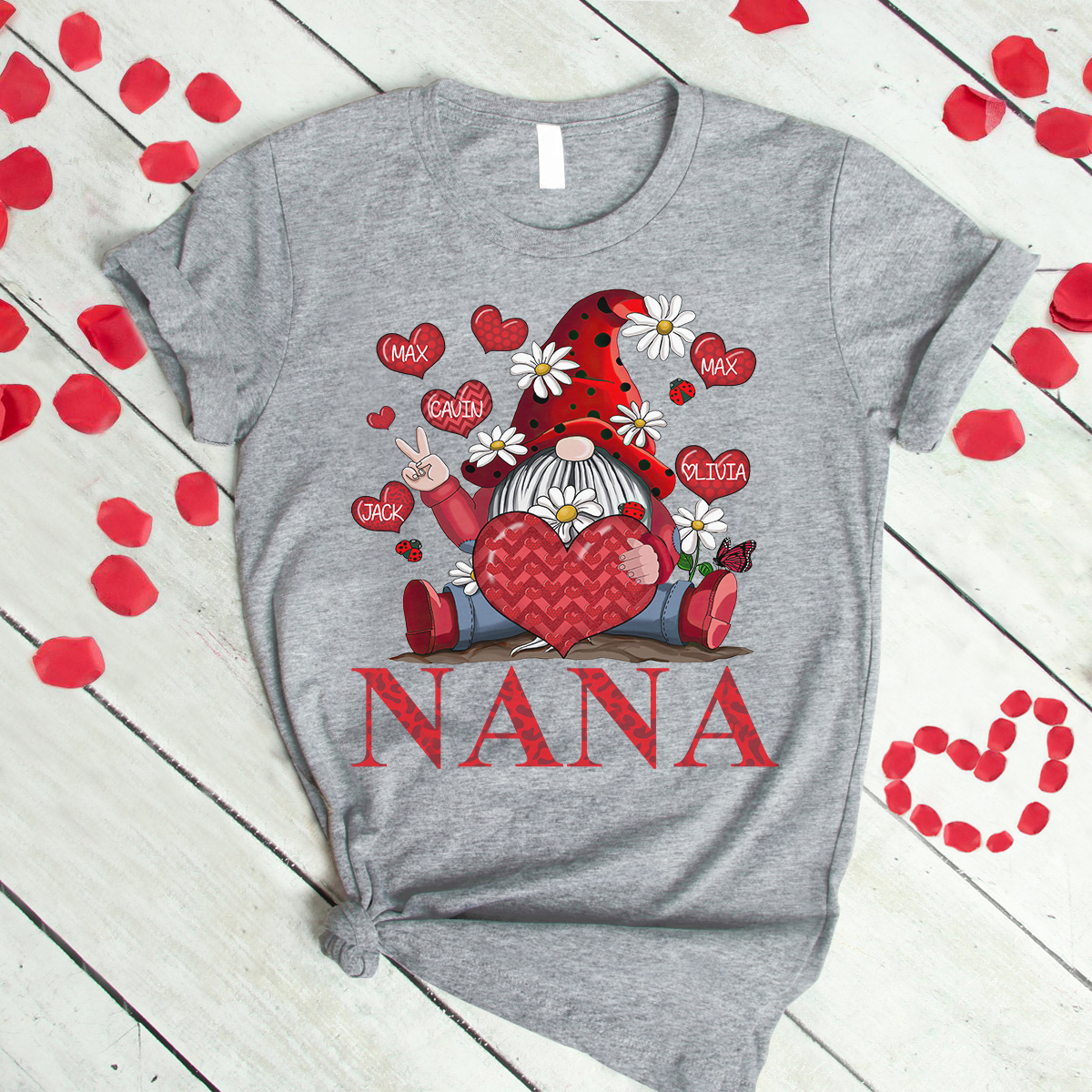 Valentine’S Gift For Grandma, Gnome Valentine Shirt, Personalized Grandma And Grandkids T-Shirt