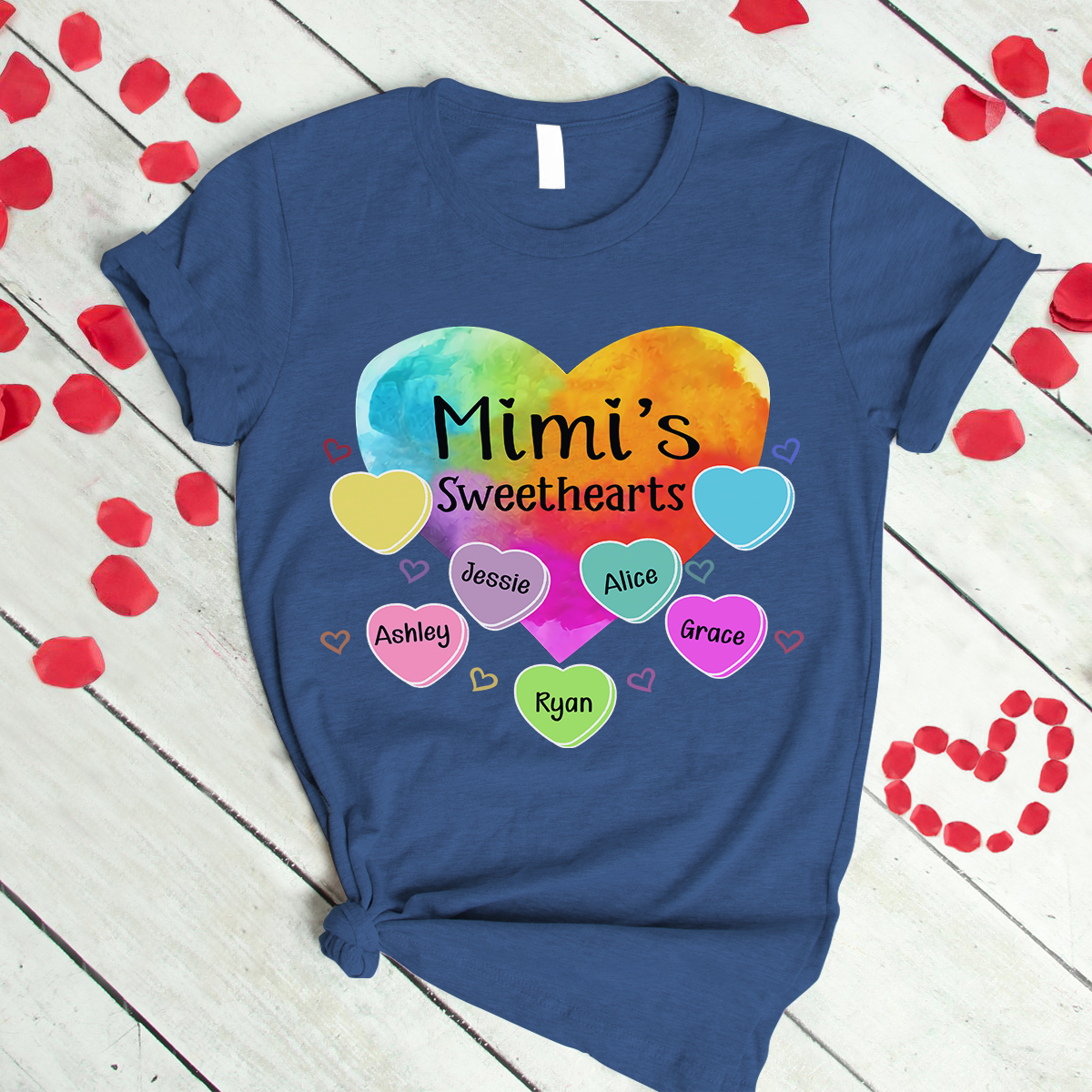 Valentine’S Gift For Grandma – Personalized Grandma Sweethearts With Grandkids Heart Color Art T-Shirt