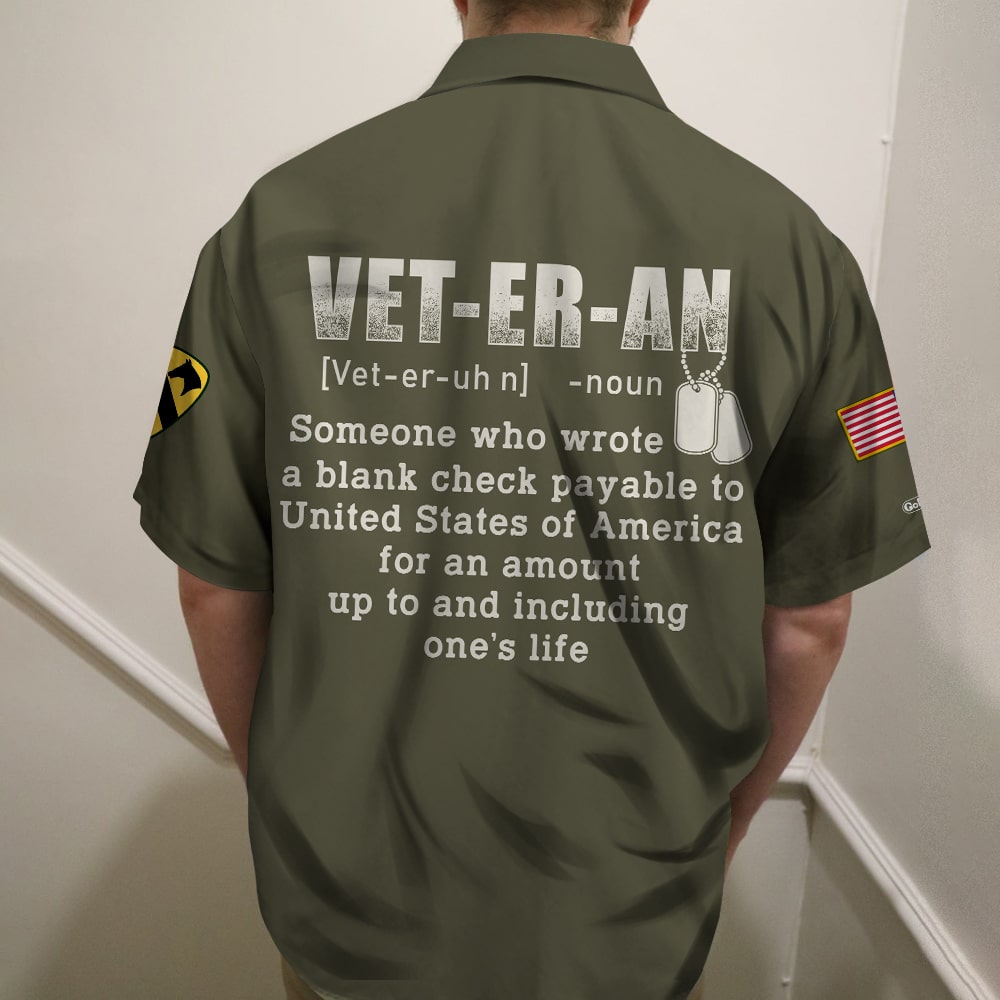 Veteran Hawaiian Shirt – Custom Military Unit – A Blank Check Payable, Soldier Front