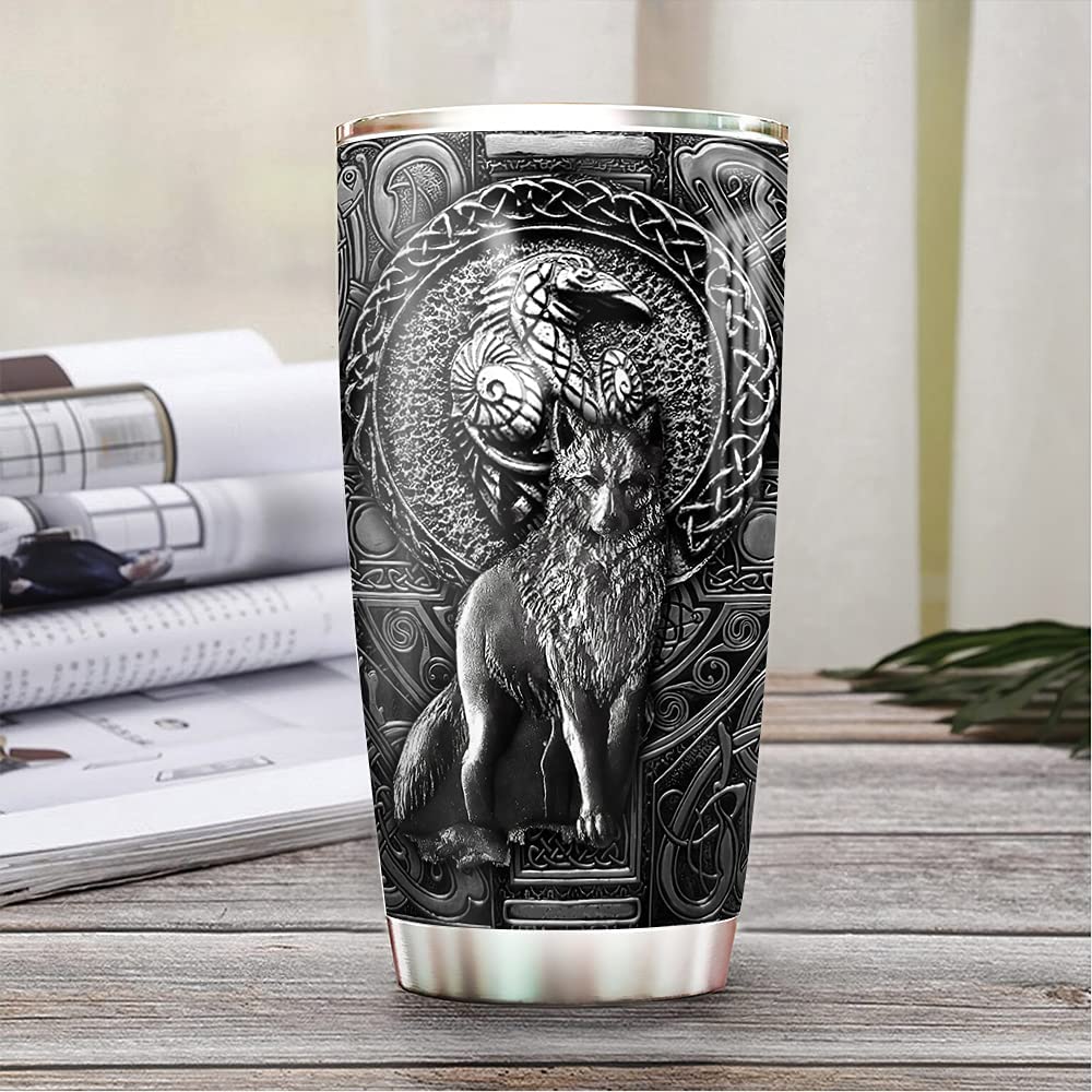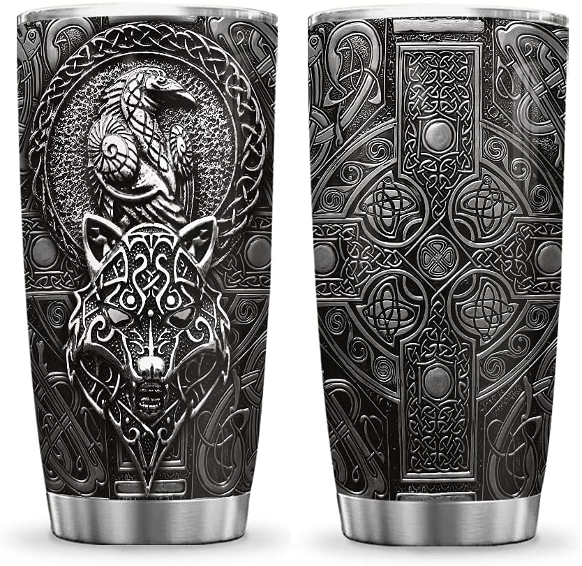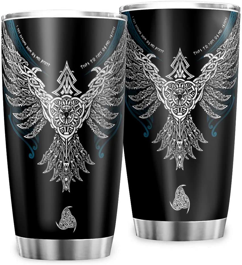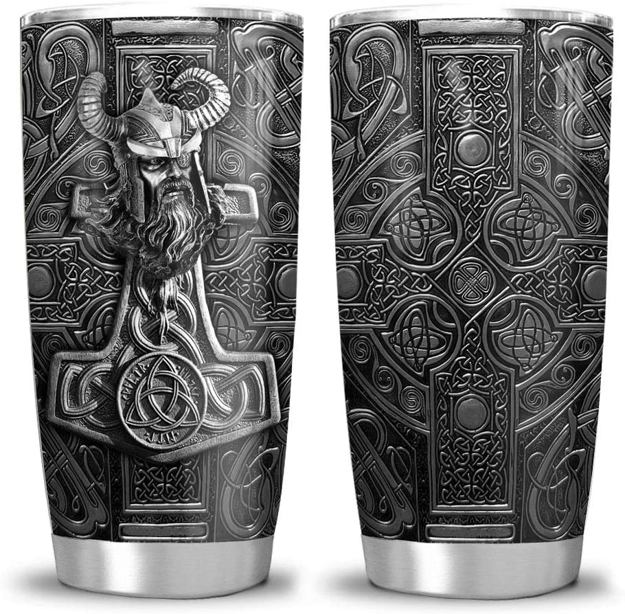 Viking 20Oz Stainless Steel Tumbler, Viking Odin Celtic Tumbler Cup With Lid, Gift For Viking Lovers