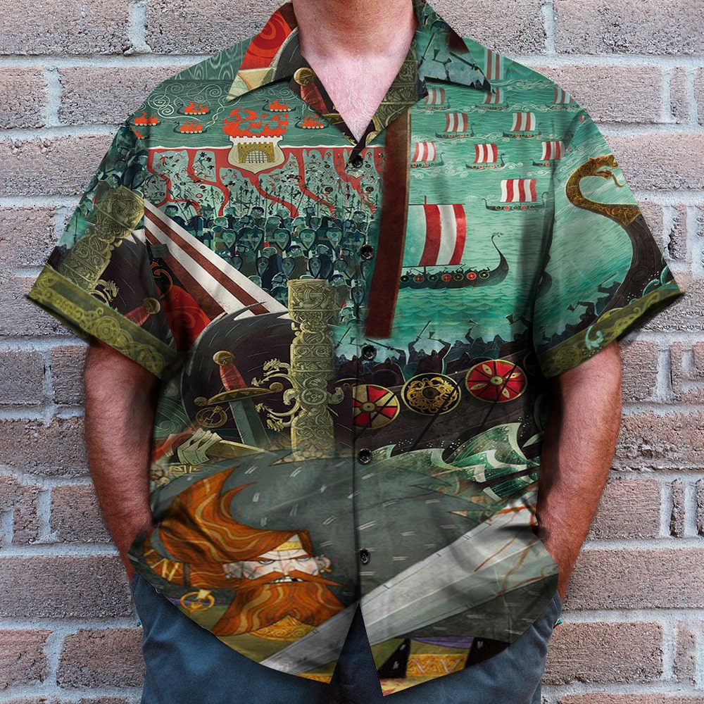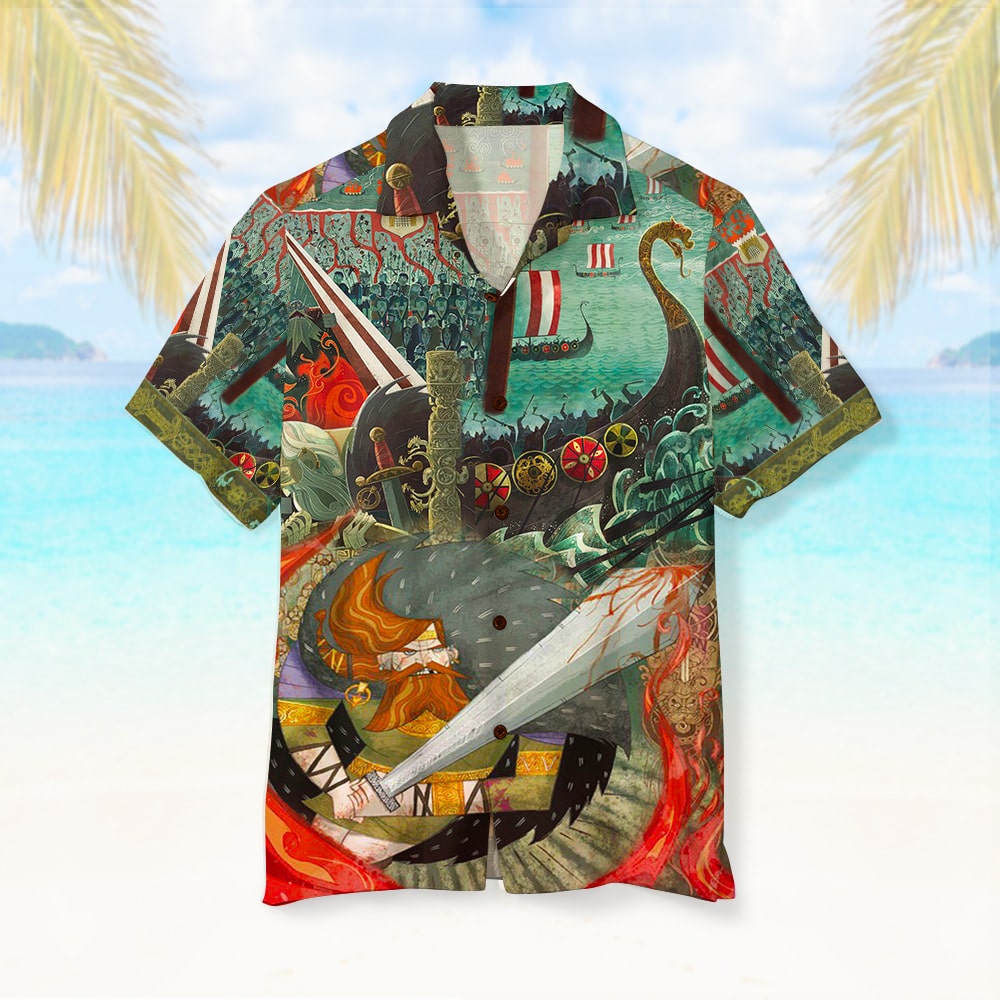 Viking Hawaiian Shirt – Viking Warrior Doodle Art Pattern