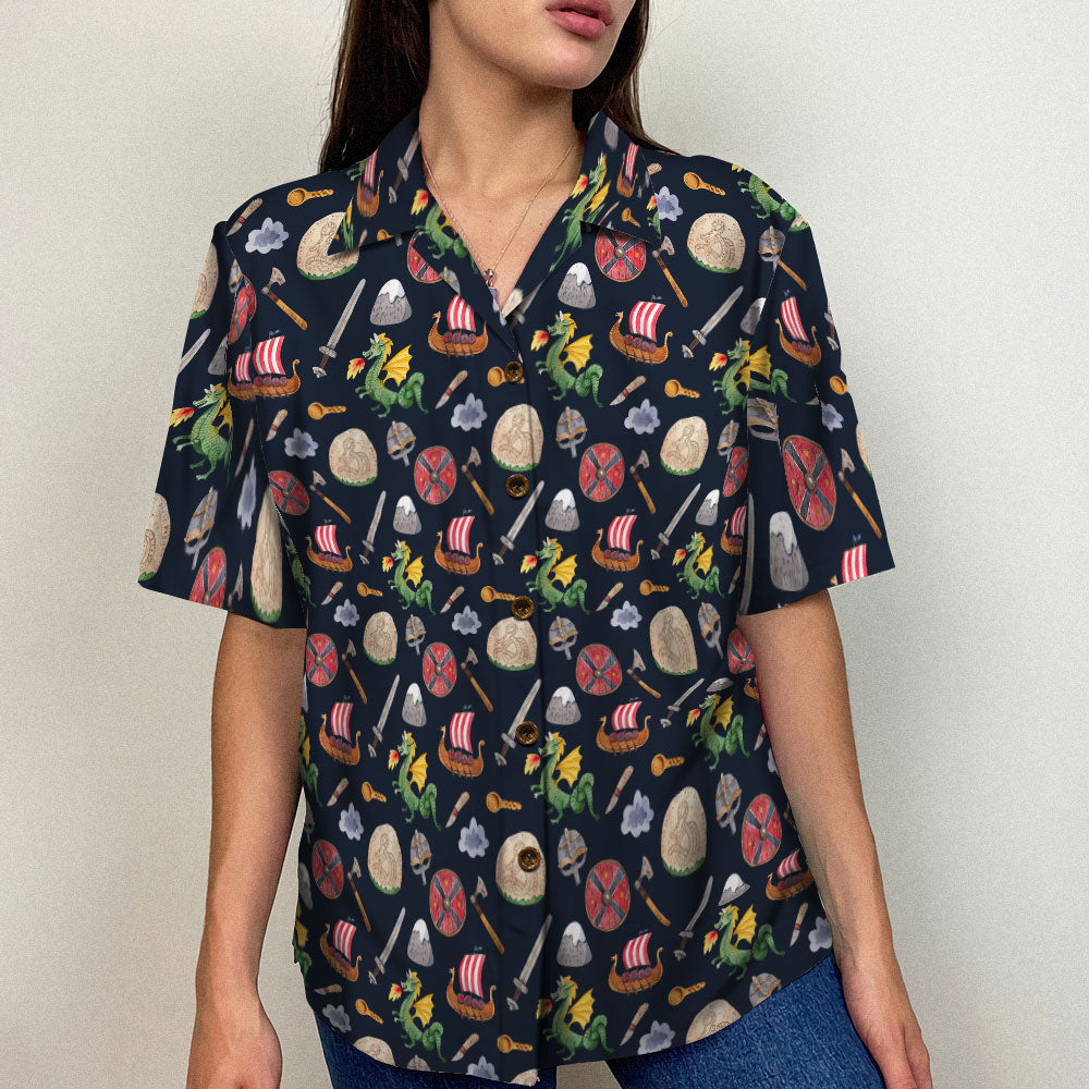 Viking Hawaiian Shirts – Watercolor Cartoon Style