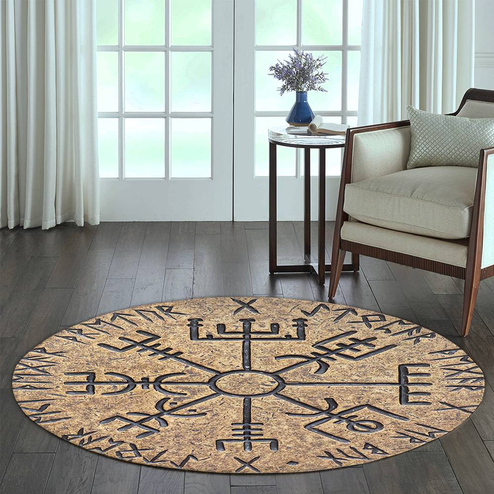 Viking Rune Wheel Odin Alphabet Talisman – Round Rug