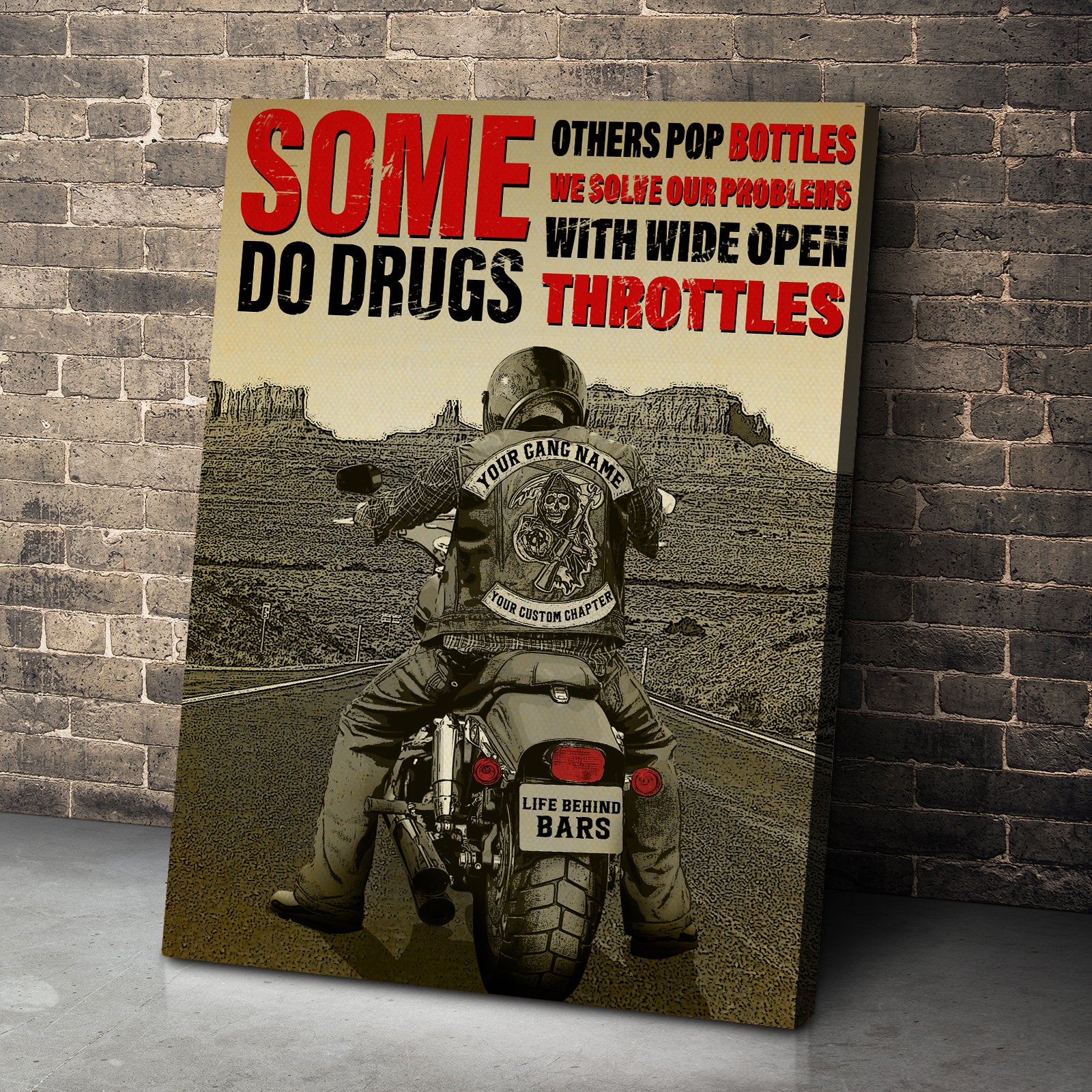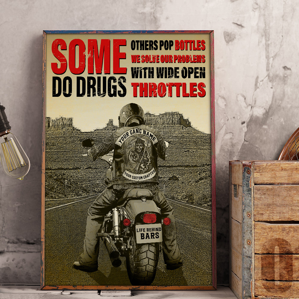 Vintage Biker Poster – Some Do Drugs Others Pop Bottles We Solve Our Problems