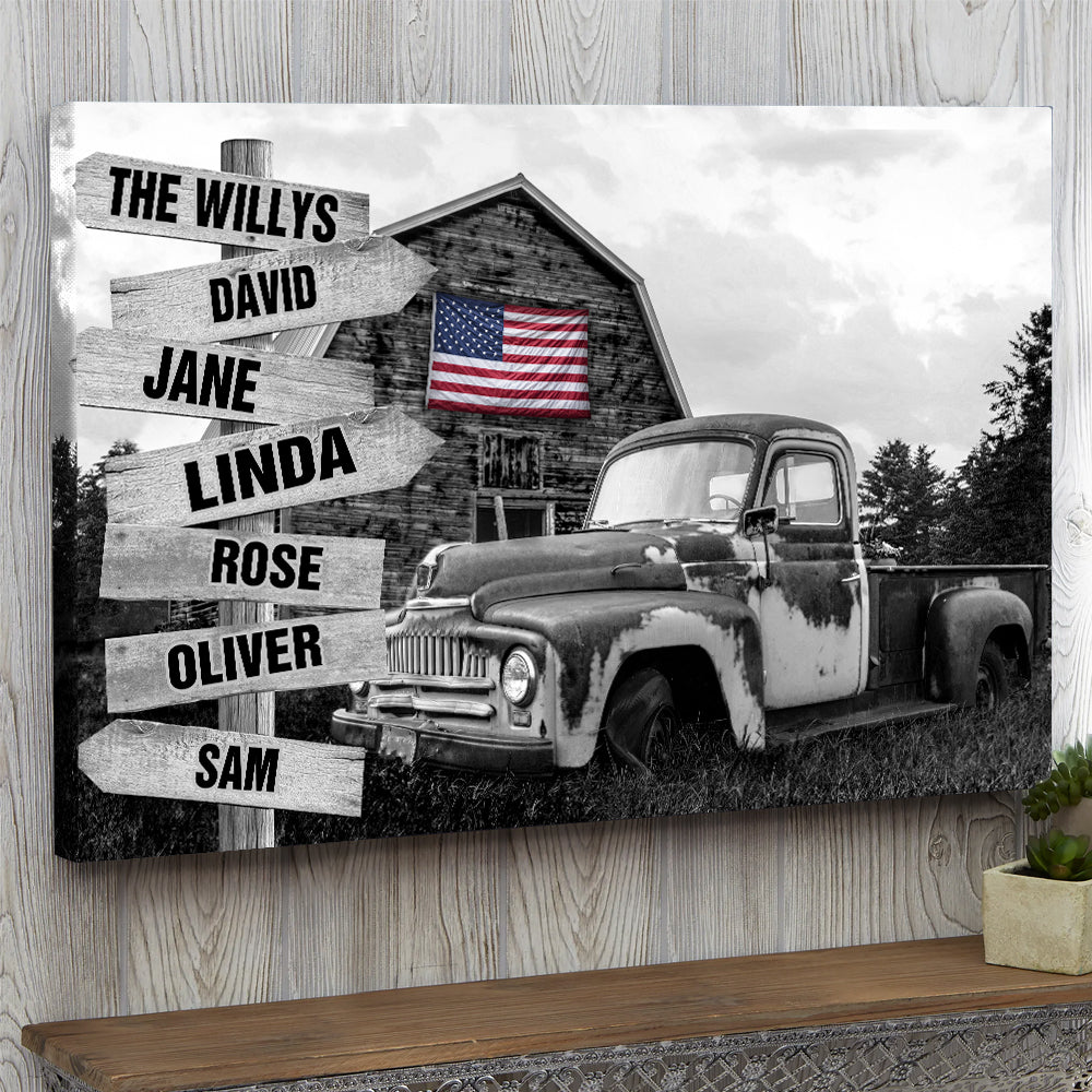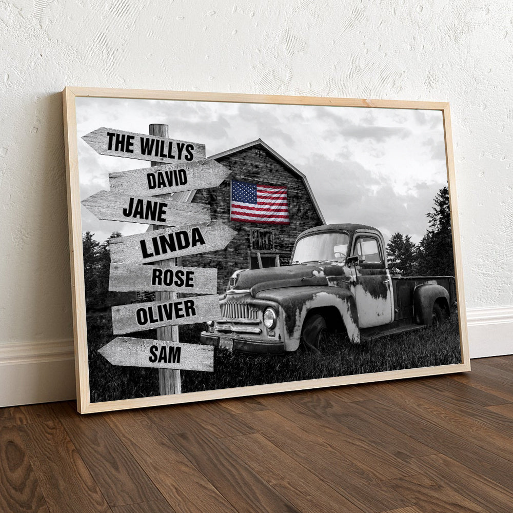 Vintage Farm Barn With Abandoned Pickup Truck Poster – Custom Name