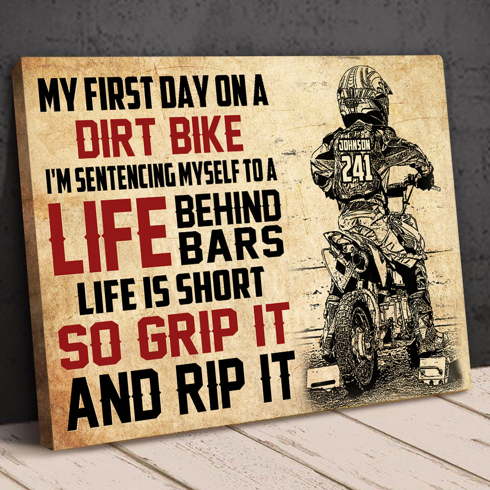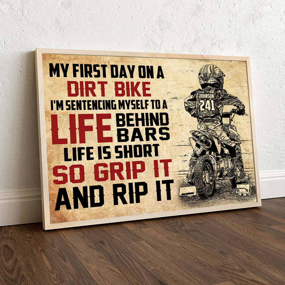 Vintage Motocross Poster – Custom Name, Number – My First Day On A Dirt Bike – Grip It And Rip It