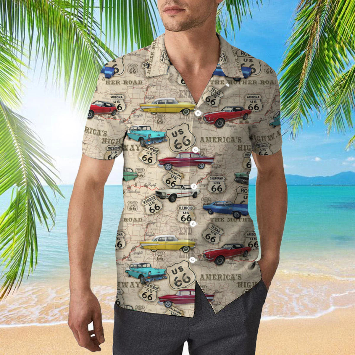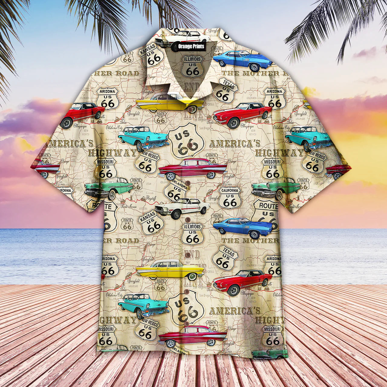 Vintage Muscle Car On Route 66 Aloha Hawaiian Shirts For Men & For Women