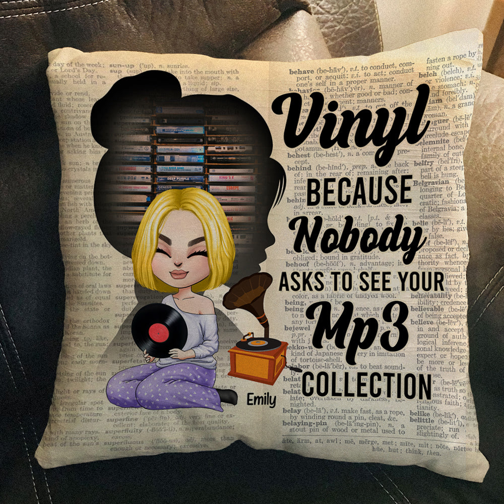 Vinyl Record Because Nobody Asks To See Your Mp3 Collection – Personalized Pillow – Gift For Vinyl Record Lovers