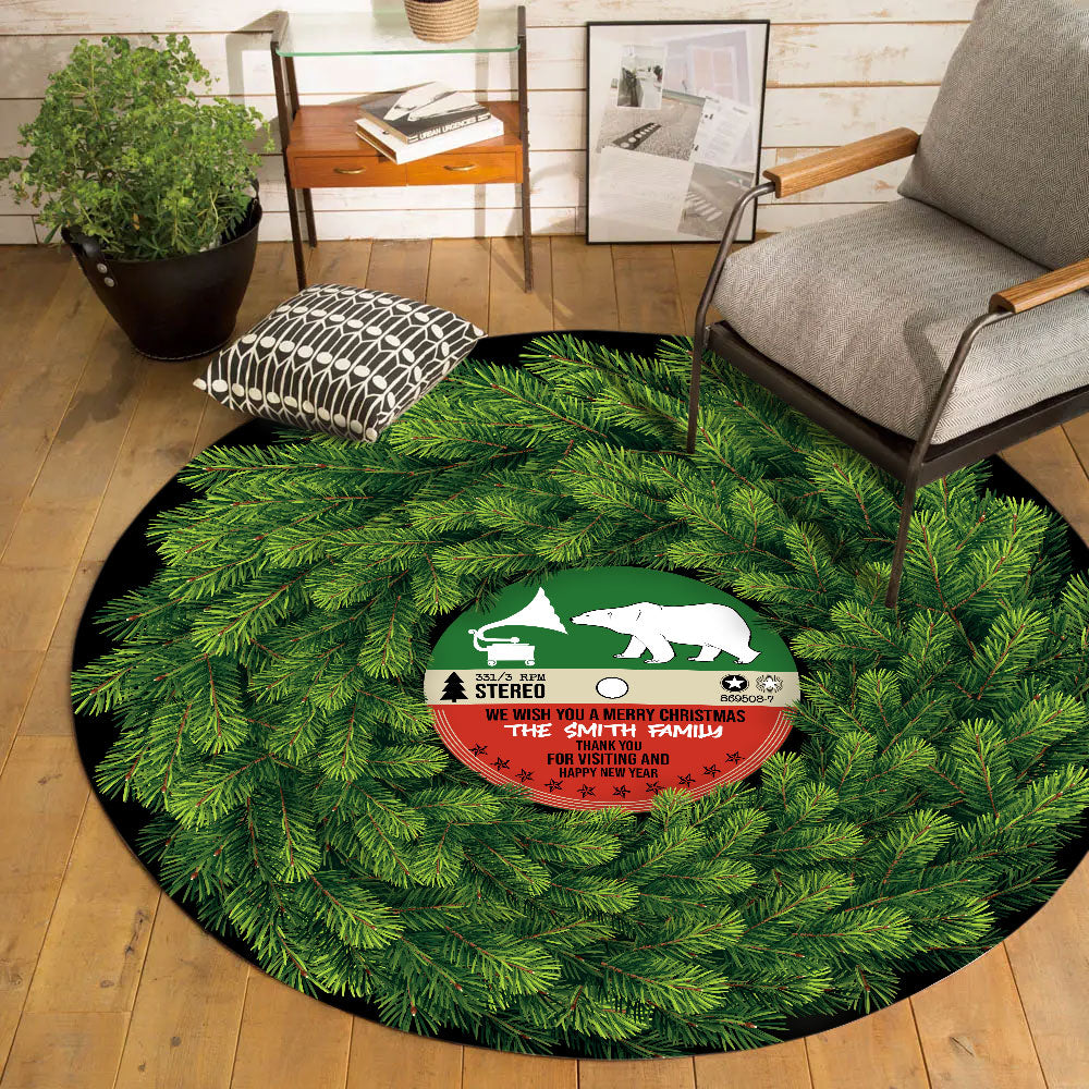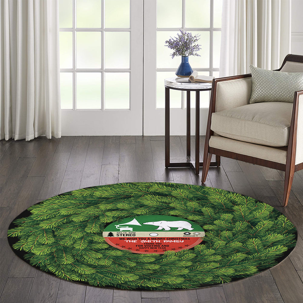 Vinyl Record We Wish You A Merry Christmas – Personalized Round Rug