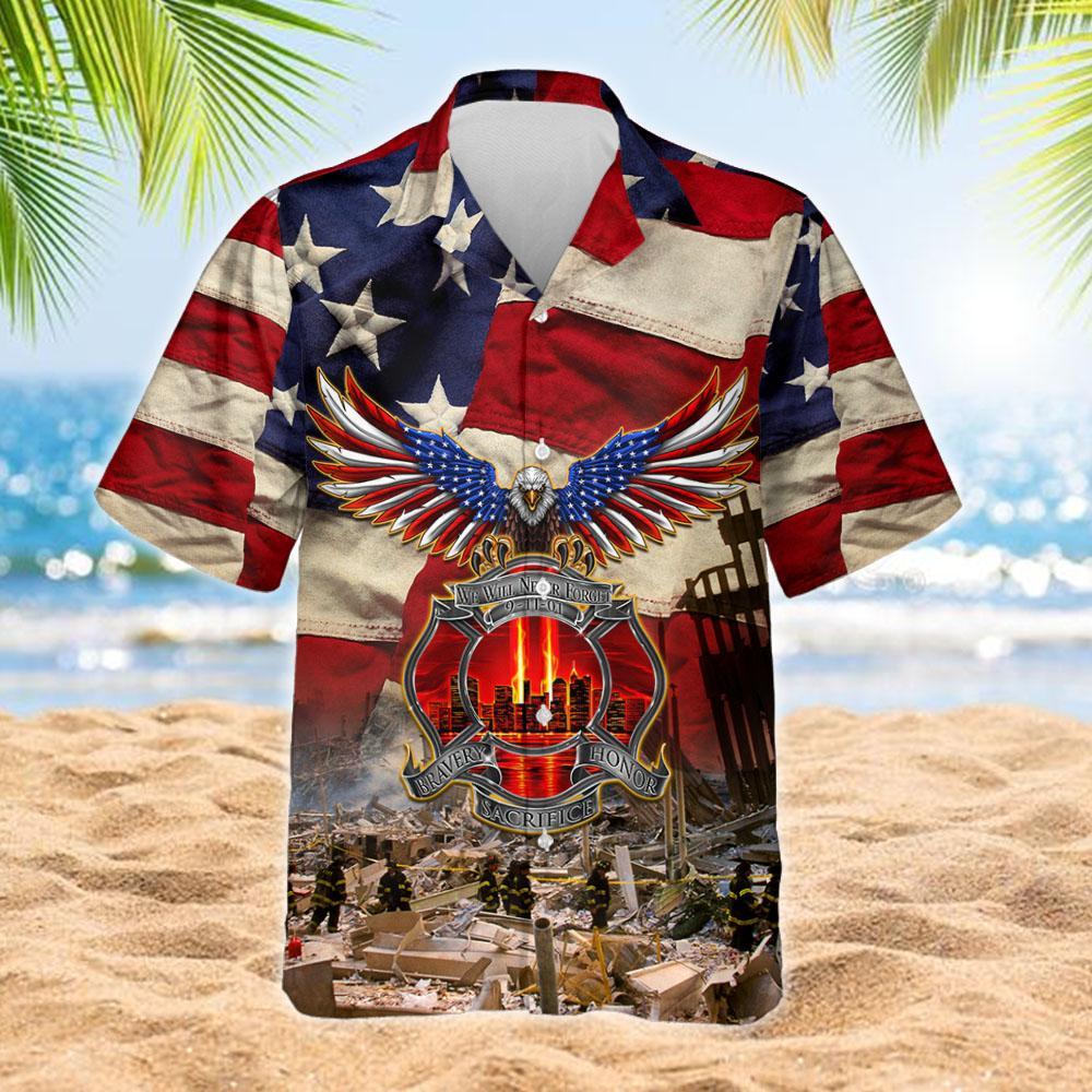 We Will Never Forget September 11Th Bravery Sacrifice Honor Hawaiian Shirt, 21 Years Never Forget Shirt, Patriot Day Shirt