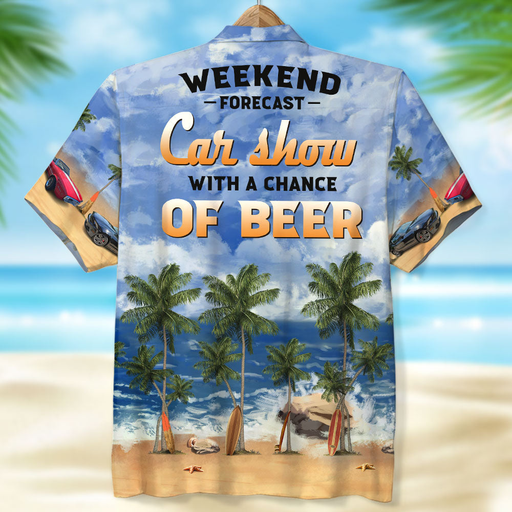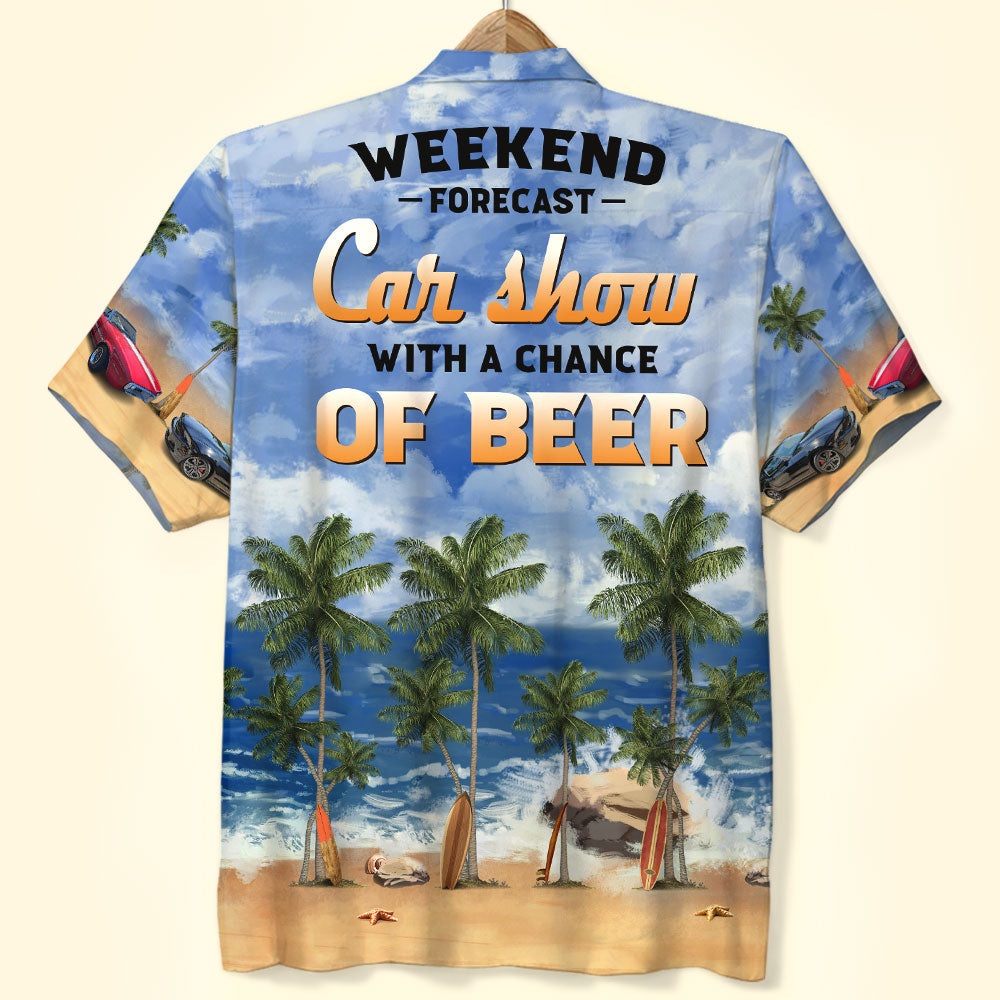 Weekend Forecast Car Show With A Chance Of Beer Custom Car Photo Hawaiian Shirt Gift For Car Lovers