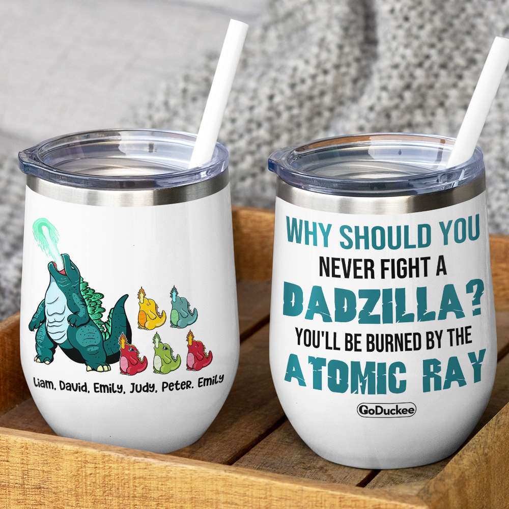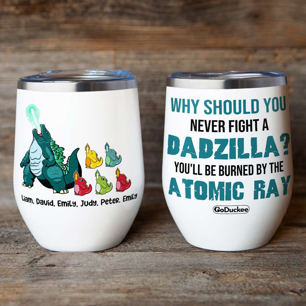 Why Should You Never Fight A Dadzilla? – Personalized Wine Tumbler – Gift For Dad Gzl2705