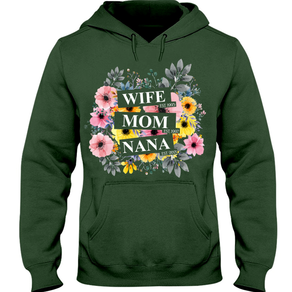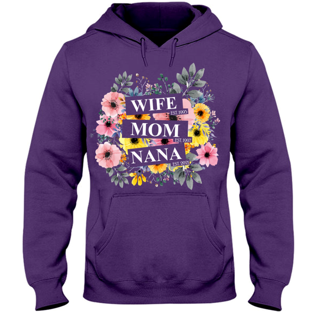 Wife Mom Nana Flower, Personalized Grandma Mother Day Hoodie