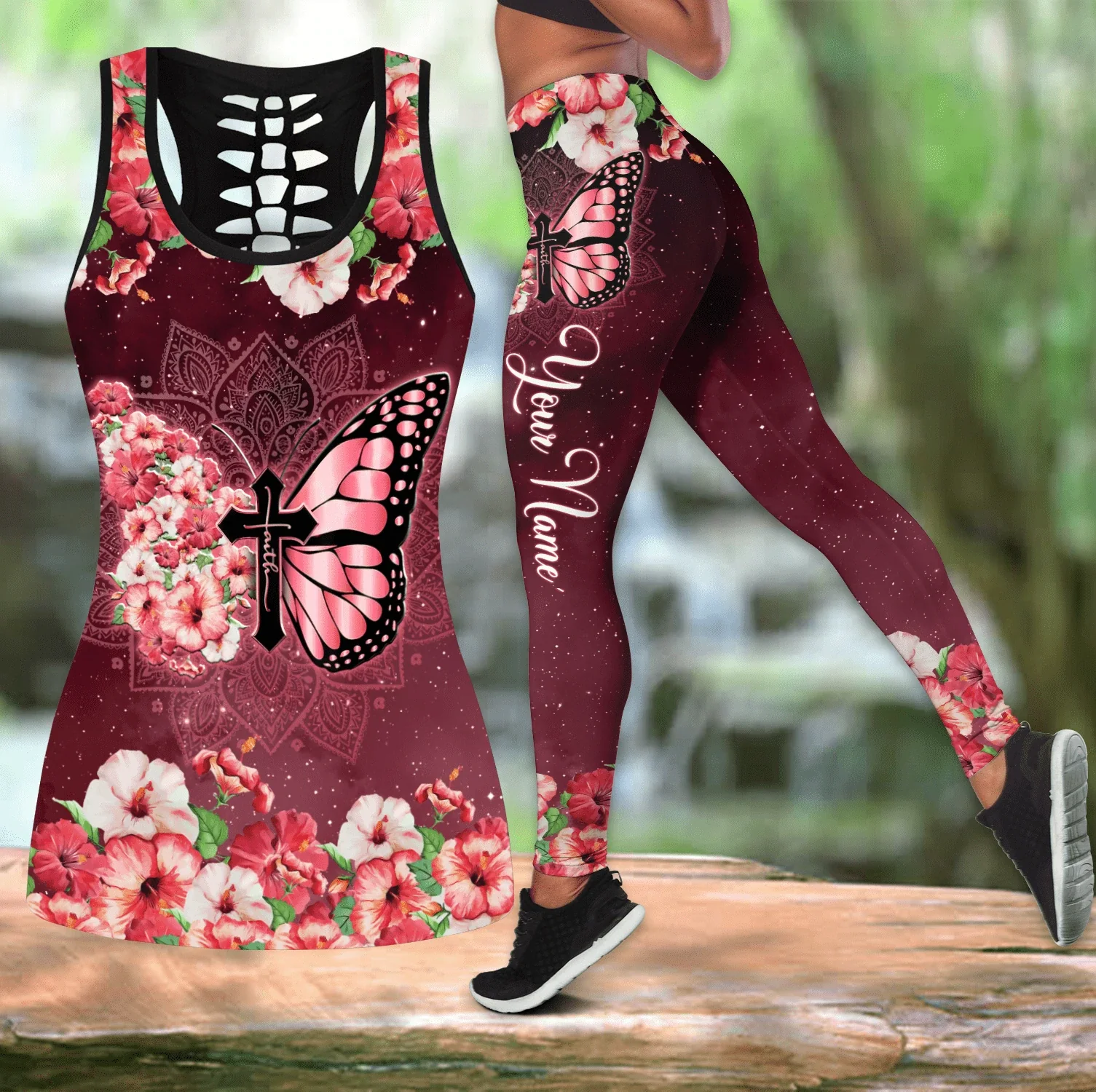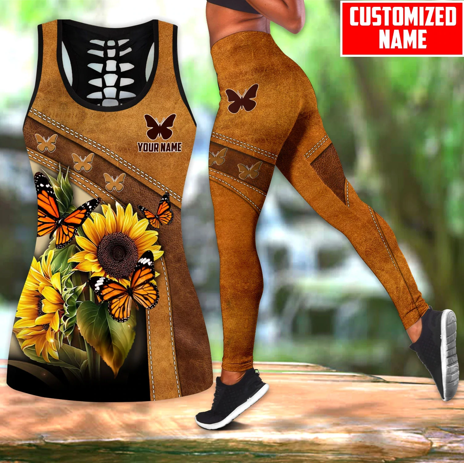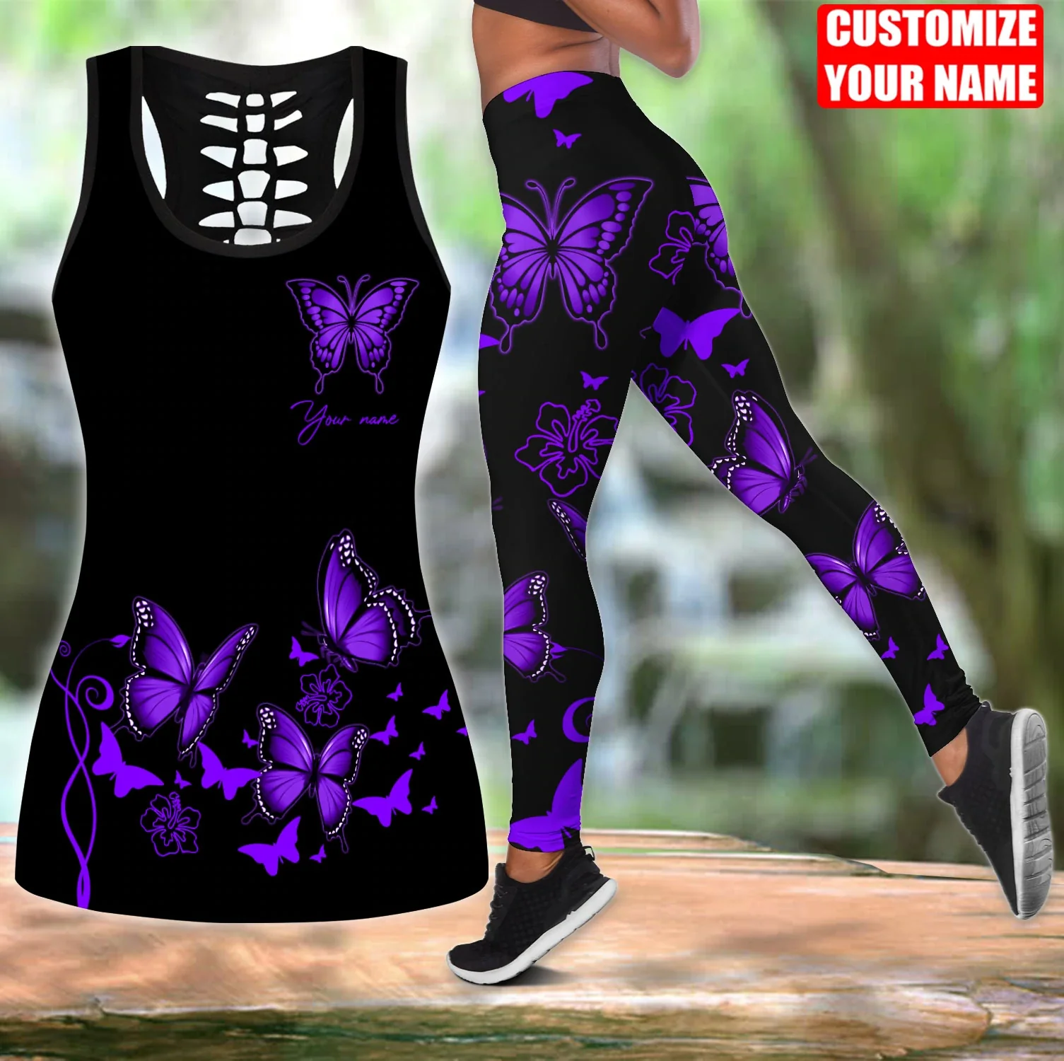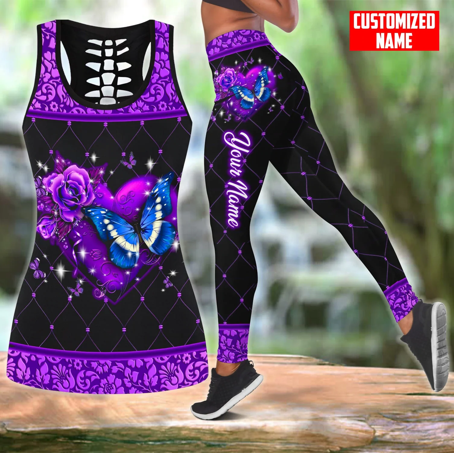 Women’S Legging Sets, Personalized Butterfly Legging + Hollow Tank Combo, Tank Top Women
