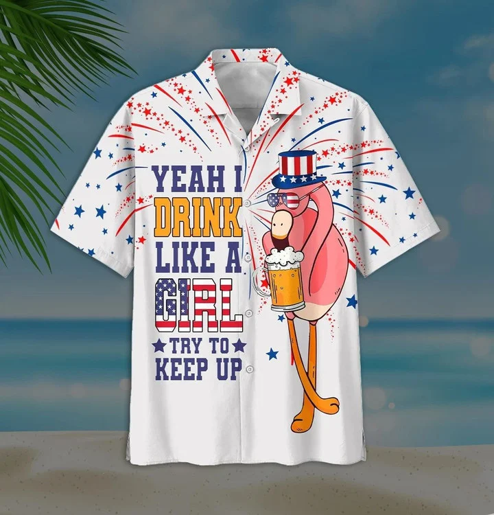 Yeah I Drink Like A Girl Charming Flamingo And Beer White Theme Hawaiian Shirt