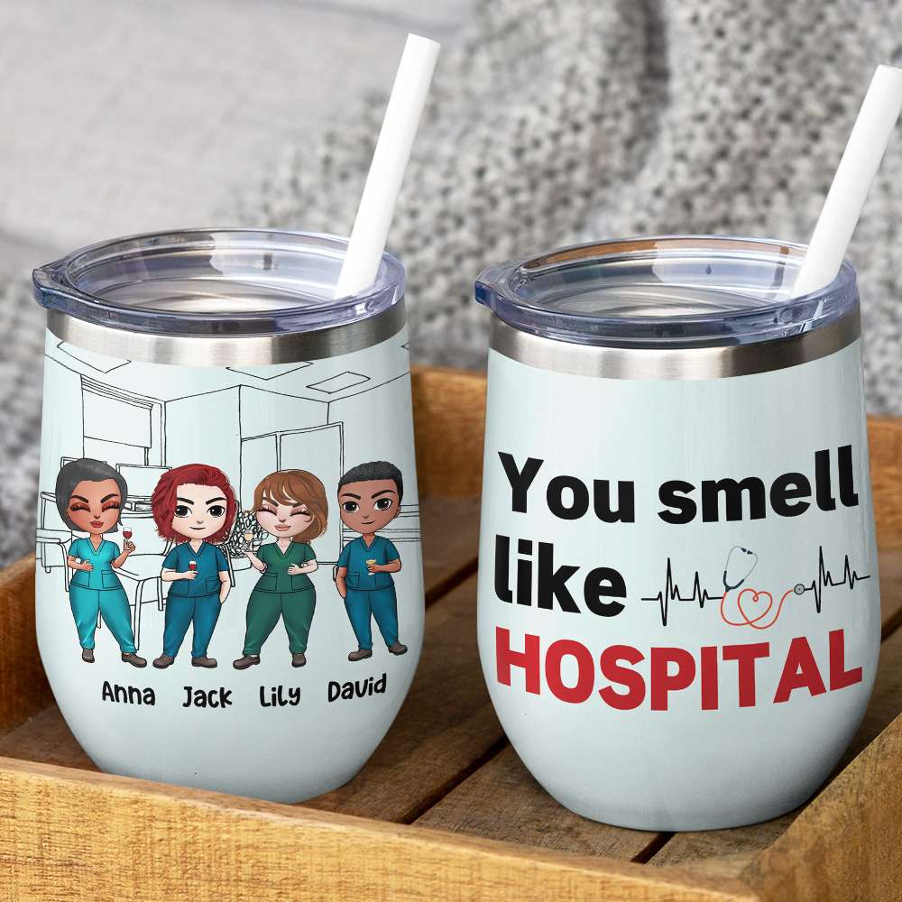 You Smell Like Hospital – Personalized Wine Tumbler – Gift For Nurse Friends – Front Nurse Doll